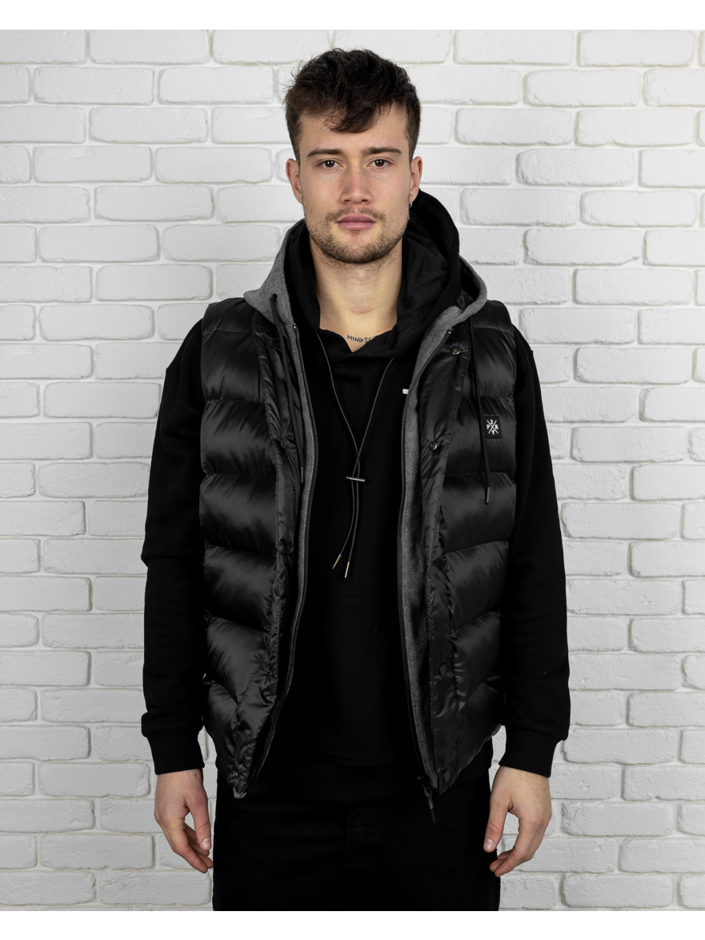 Model měří 183cm a váží 78kg