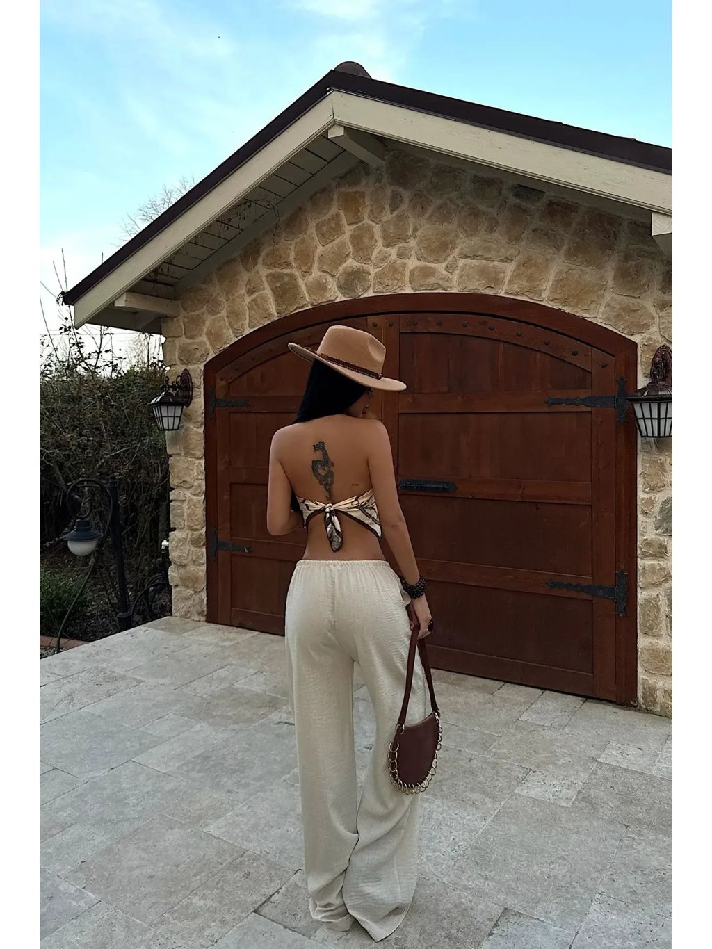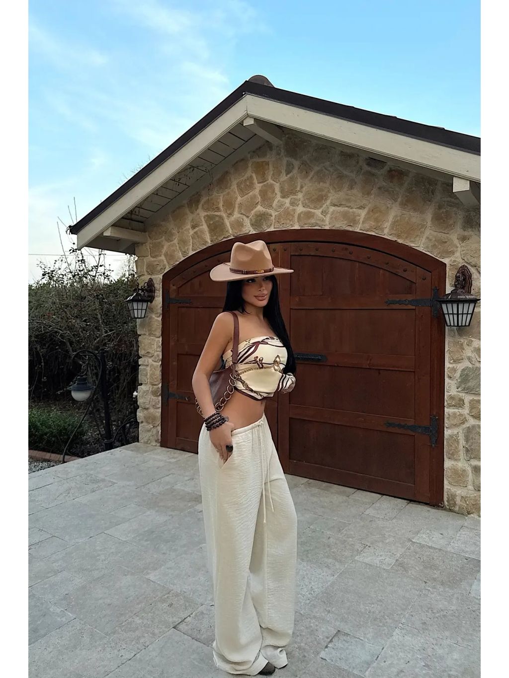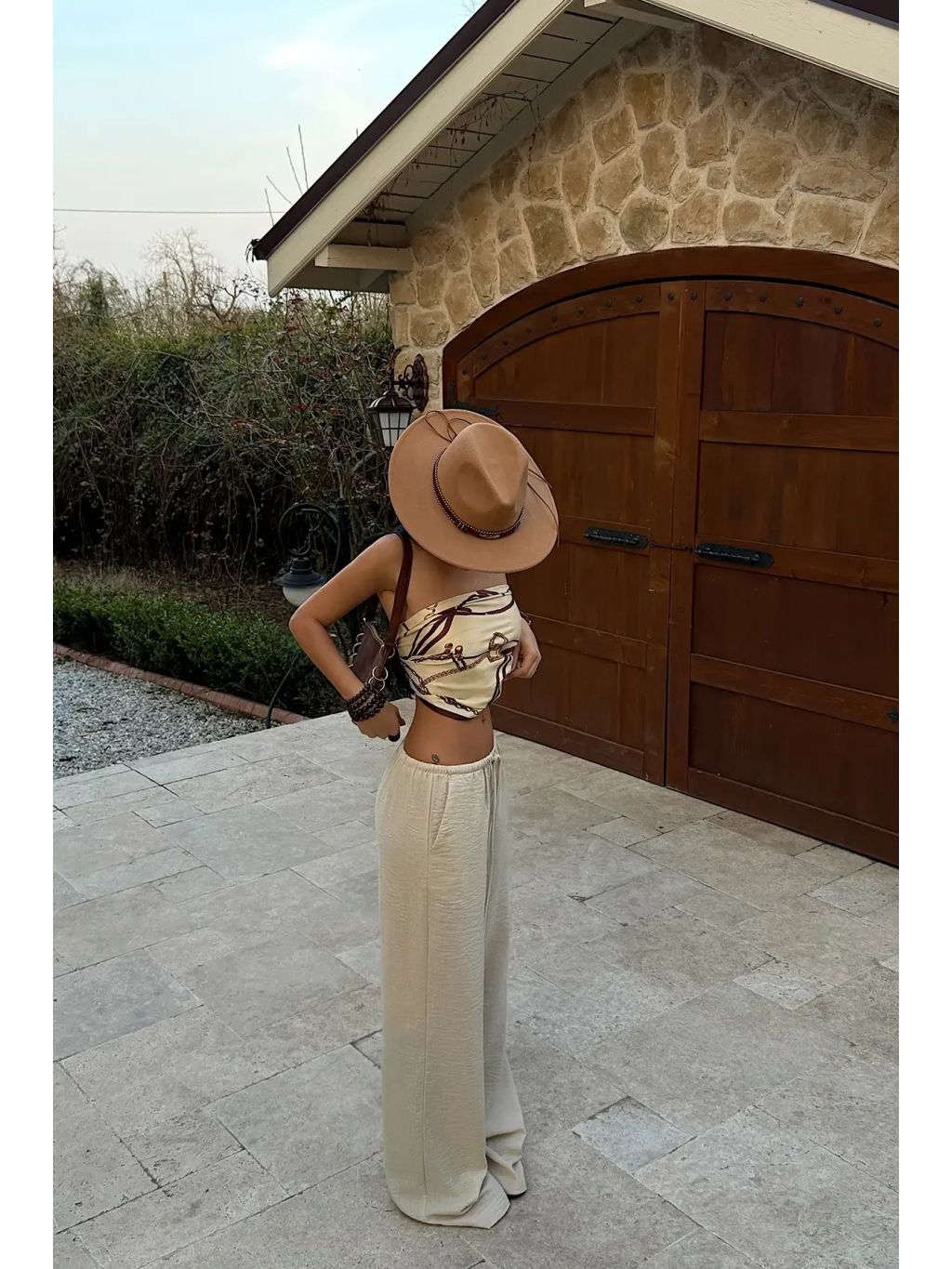 Kalhoty Sahara zaujmou svým uvolněným wide-leg střihem, který zajišťuje maximální komfort a zároveň působí elegantně a moderně. Elastický pas se šňůrkou umožňuje snadné přizpůsobení postavě, zatímco lehký materiál dodává kalhotám vzdušnost a příjemný pocit při nošení.