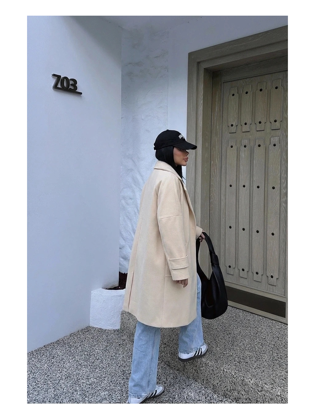 Tento krémový dlouhý kabát je ideální volbou pro minimalistický, ale výrazný styl. Rovný, lehce oversized střih působí moderně a elegantně zároveň, zatímco klasické klopy a čisté zakončení podtrhují nadčasový vzhled. Díky neutrálnímu odstínu se kabát snadno kombinuje s denimem, úplety i elegantnějšími outfity.