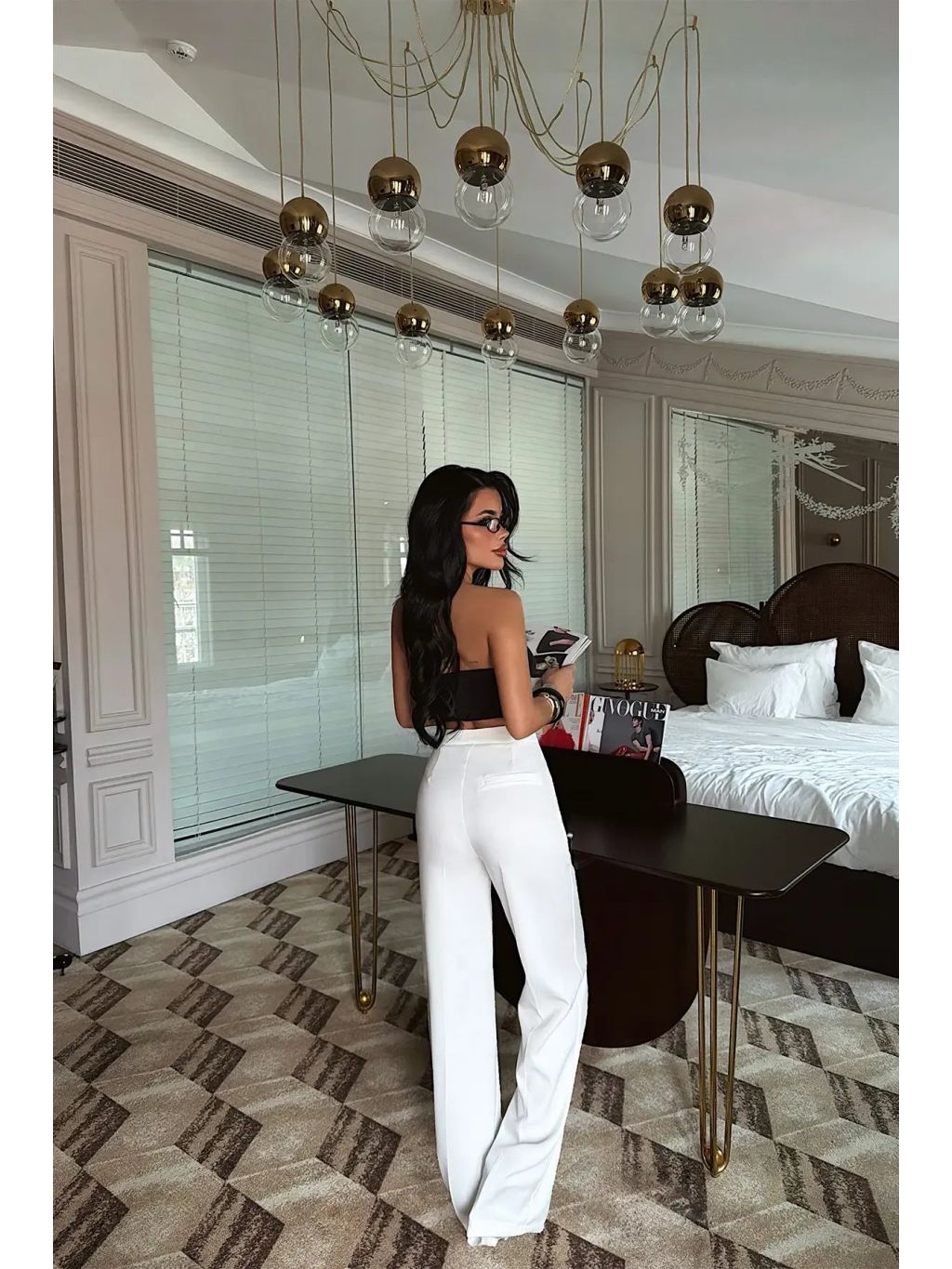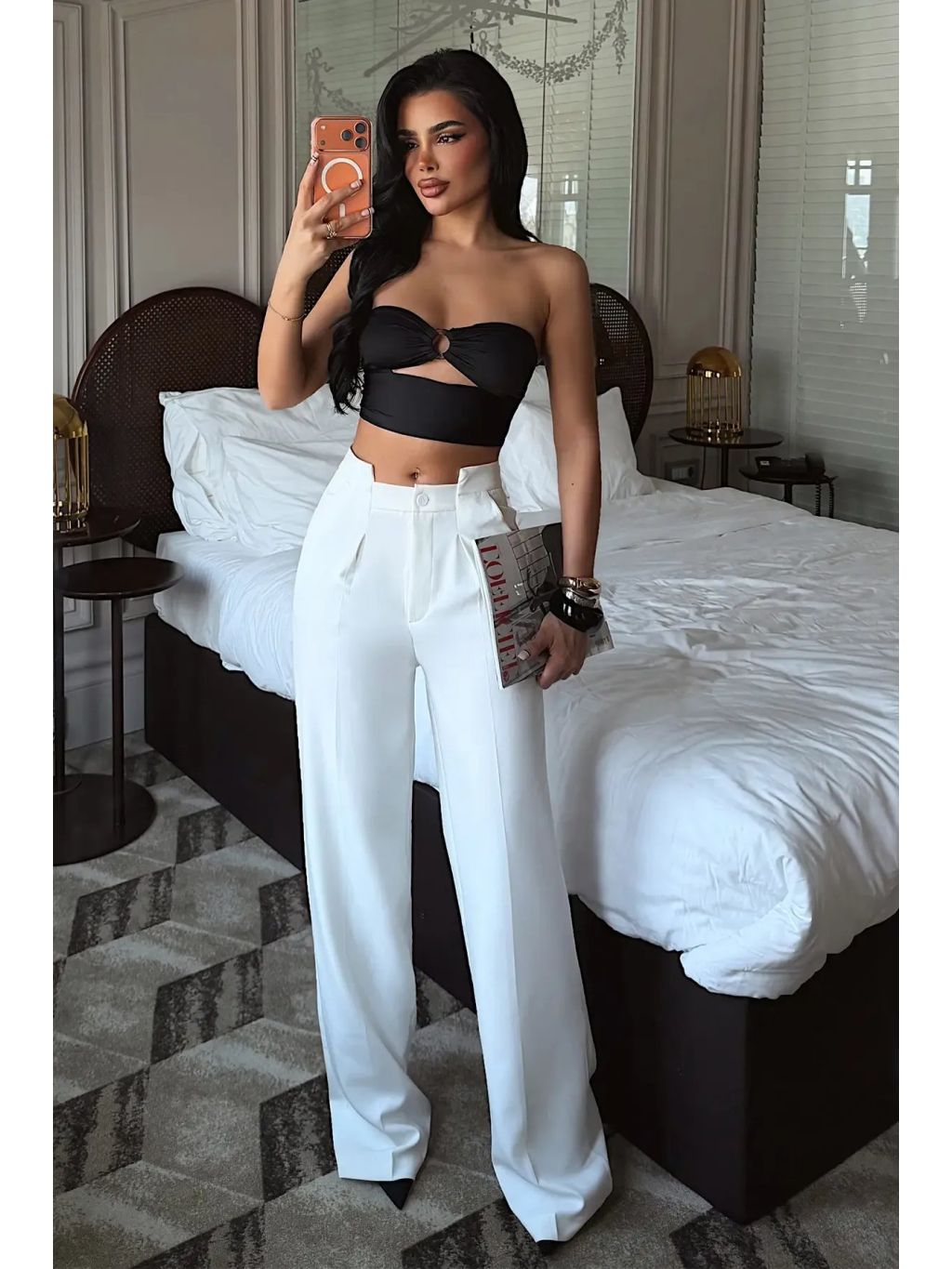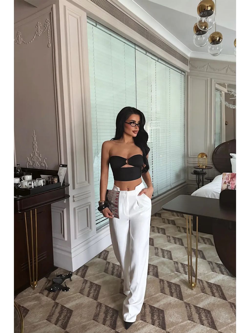 Kalhoty AURORA představují dokonalou kombinaci elegance a moderního stylu. Vysoký pas a precizně tvarovaný střih krásně zvýrazní siluetu, zatímco široké palazzo nohavice dodávají outfitu vzdušnost a luxusní vzhled.