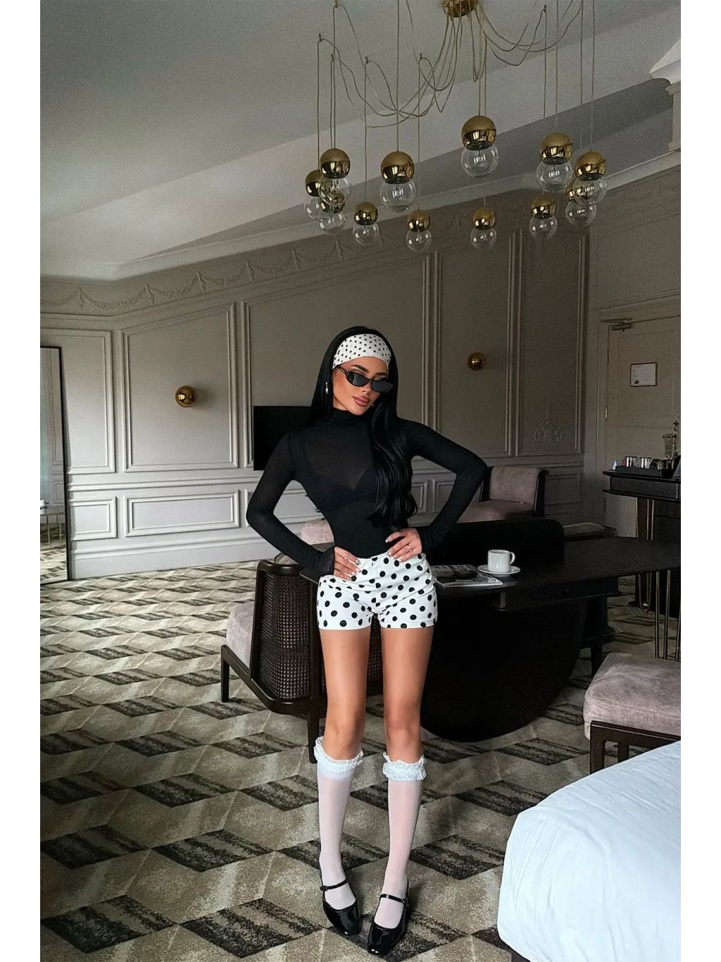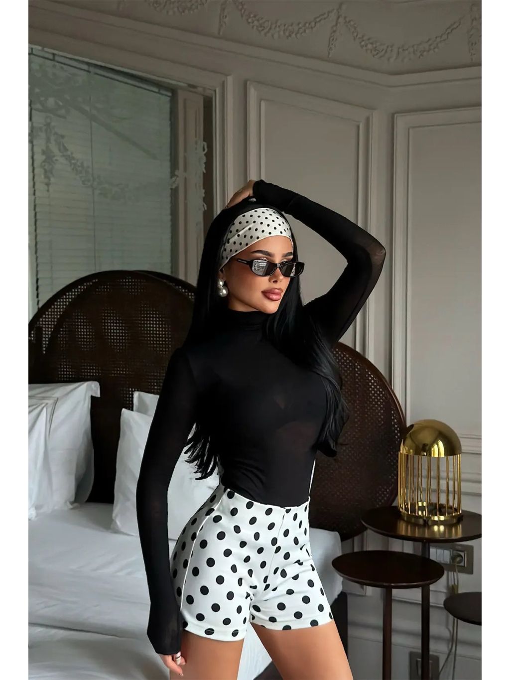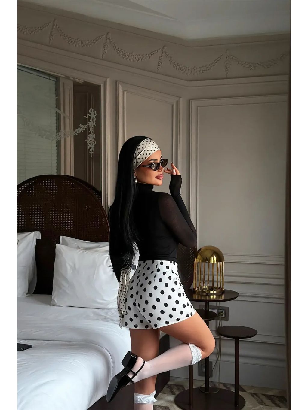 Tyto bílé puntíkované kraťasy jsou perfektní kombinací elegance a hravosti. Kontrastní černé puntíky dodávají outfitu stylový retro nádech, který nikdy nevyjde z módy.