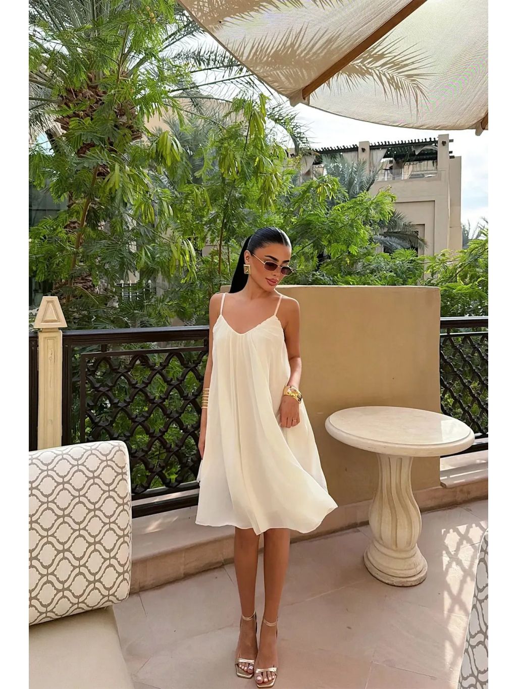 Lehké bílé šaty na ramínka s volným střihem – elegantní a vzdušný kousek pro letní dny.
