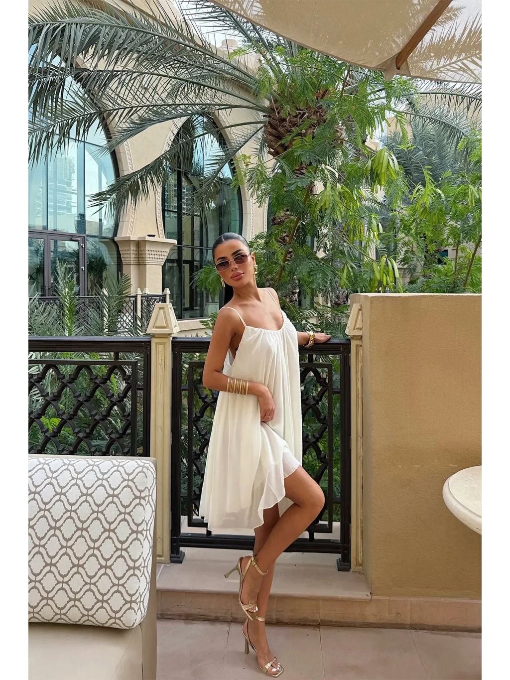 Jemně nařasený výstřih dodává šatům elegantní detail, zatímco lehká, vzdušná látka vytváří při pohybu přirozený efekt. Díky minimalistickému designu se šaty snadno kombinují – skvěle vypadají s podpatky pro elegantní look i se sandály pro uvolněný letní outfit.