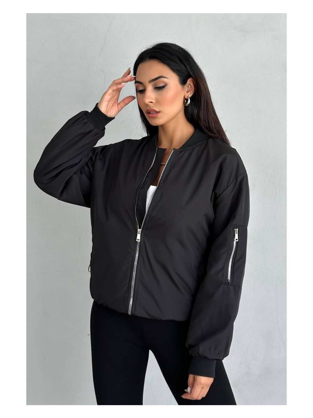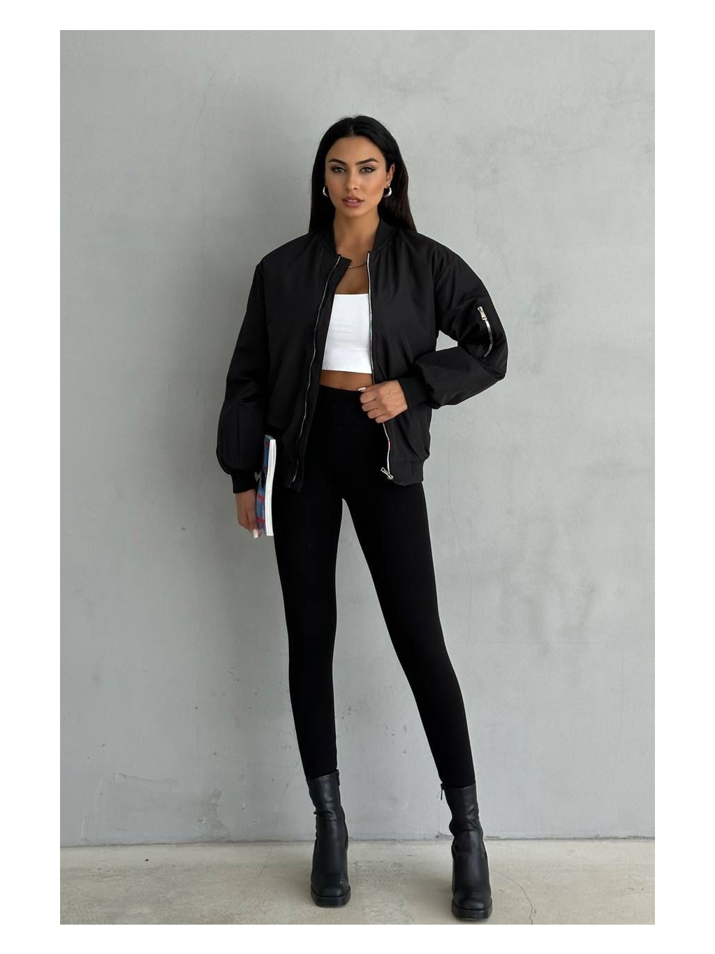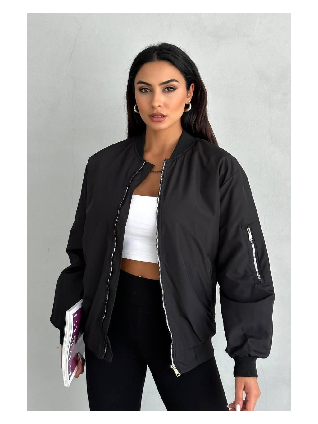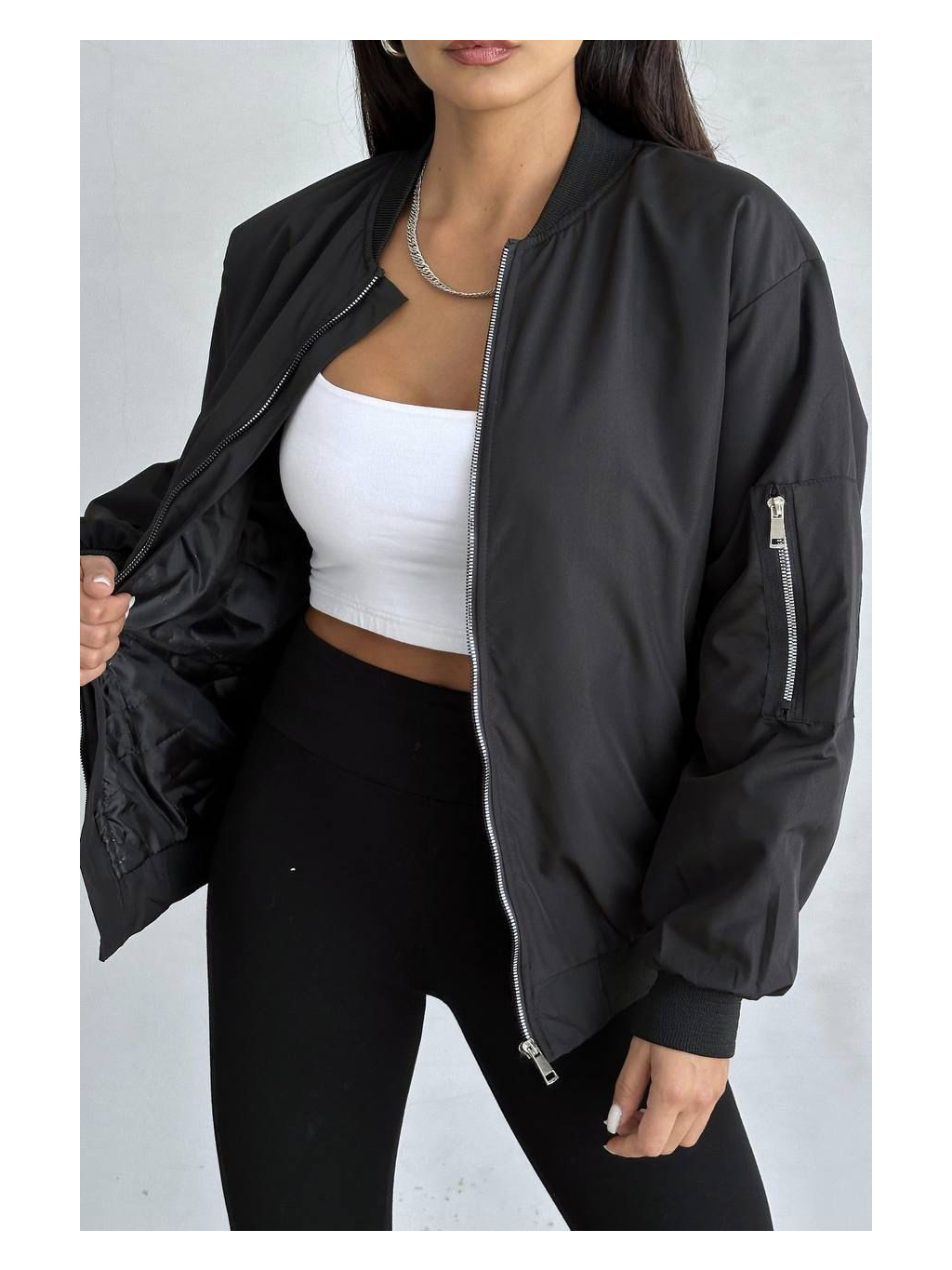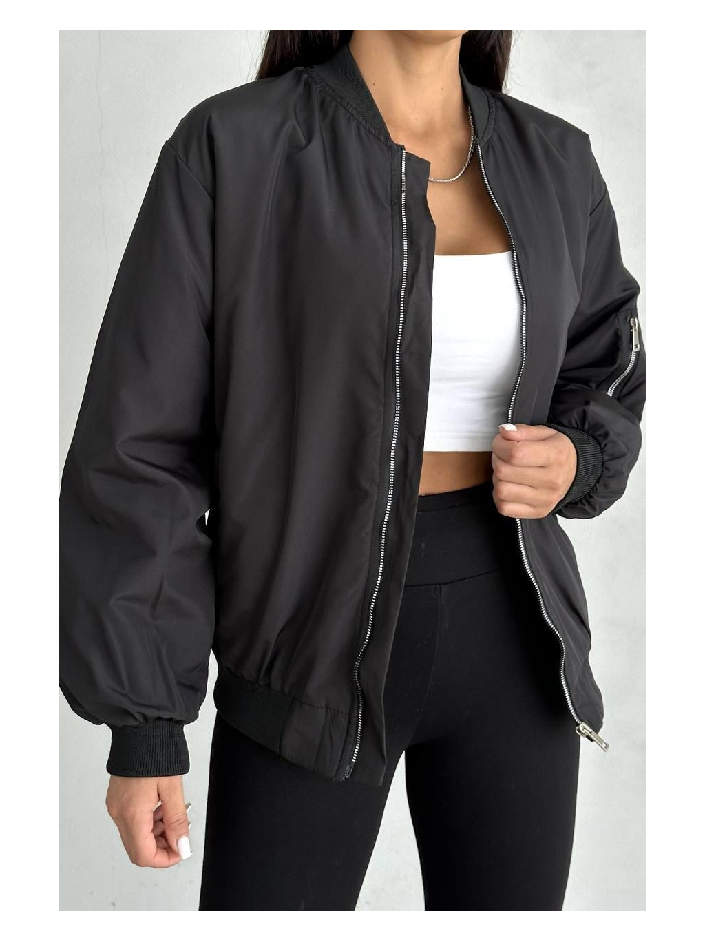 Tato oversized bomber bunda v klasické černé barvě přináší moderní a zároveň nadčasový street styl. Díky volnému střihu působí uvolněně a snadno se kombinuje jak s legínami, tak i s denimem.