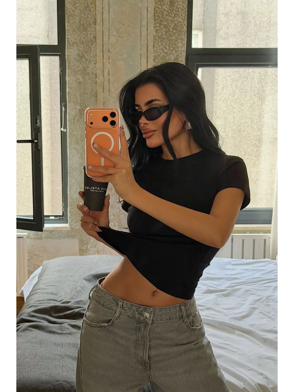 Dámské černé přiléhavé tričko – minimalistický základ pro každý outfit.