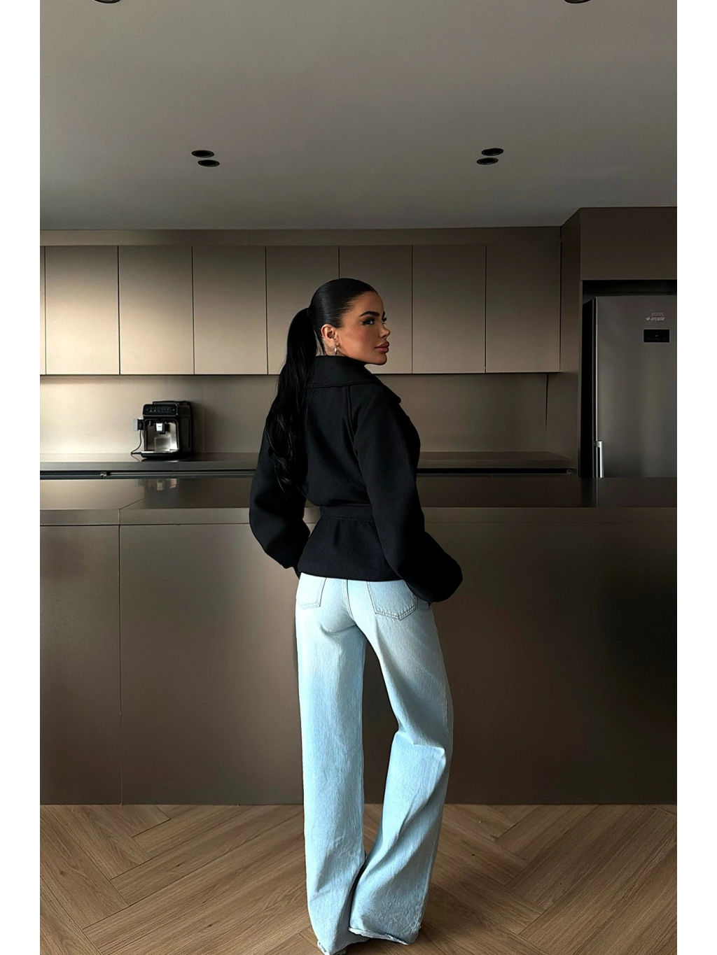 Lehce strukturovaný materiál působí luxusně a zároveň je pohodlný na nošení. Díky mírné pružnosti se kabát přizpůsobí postavě a umožňuje volnost pohybu. Skvěle funguje v kombinaci s riflemi, elegantními kalhotami i sukněmi.