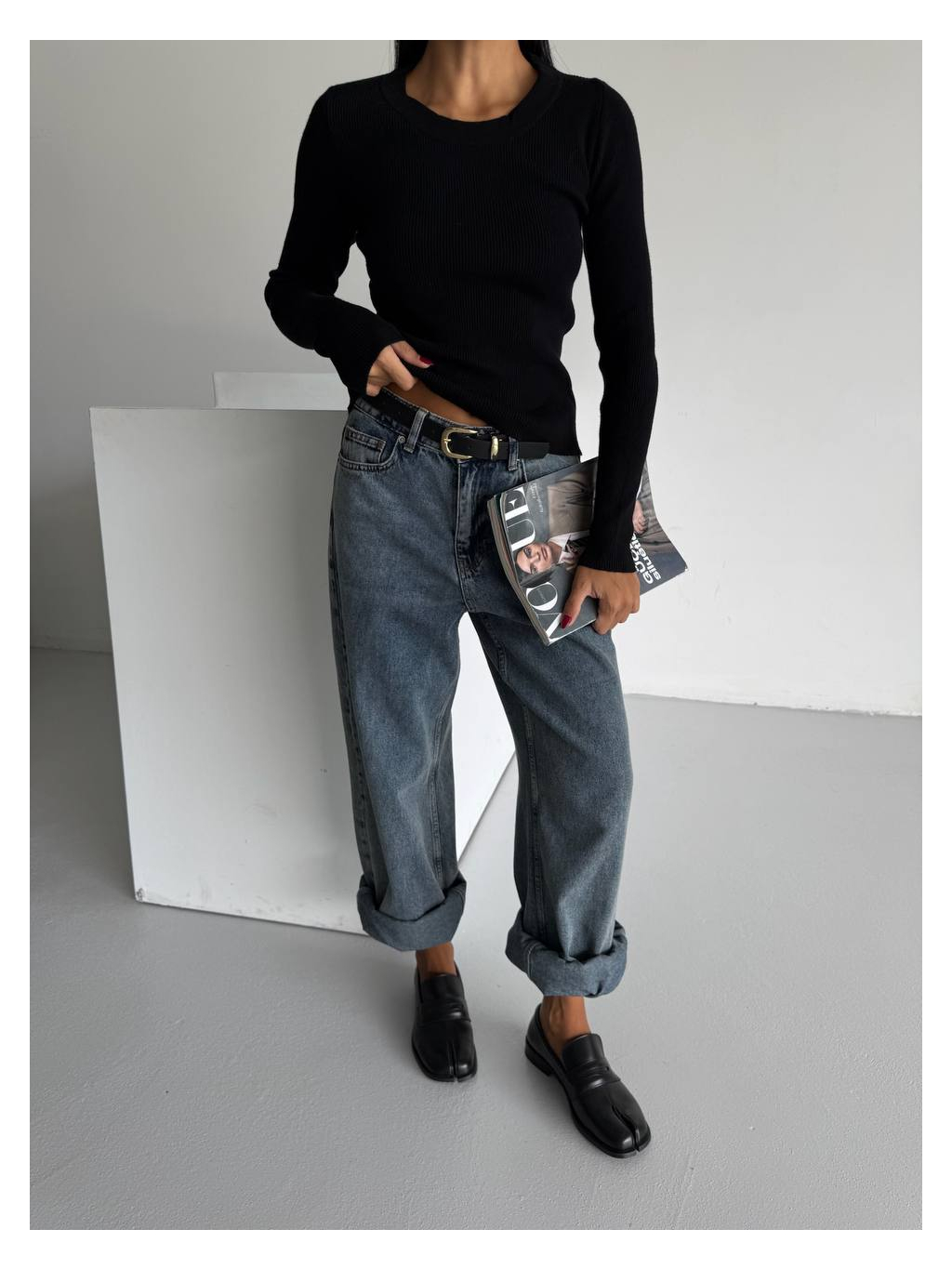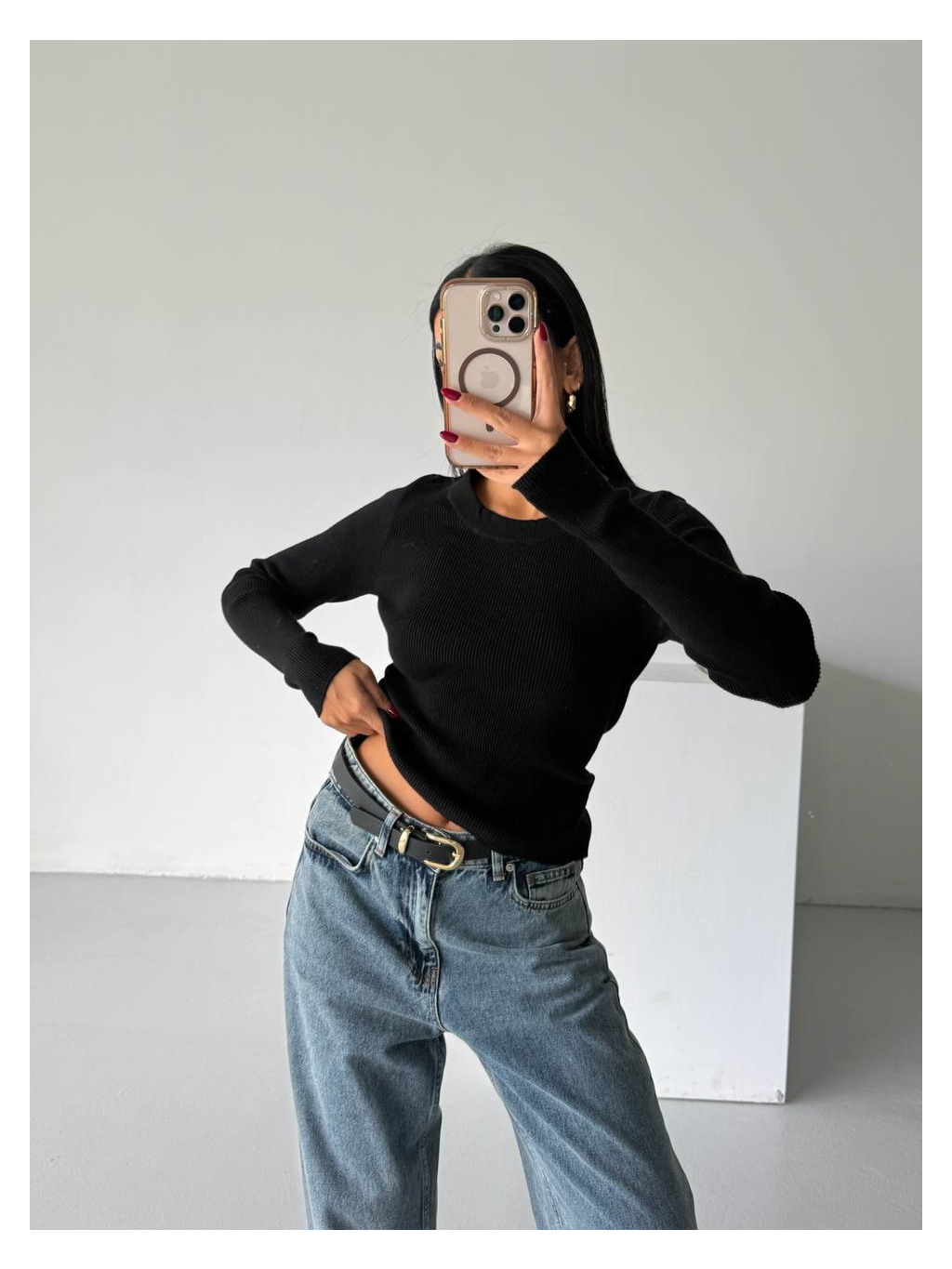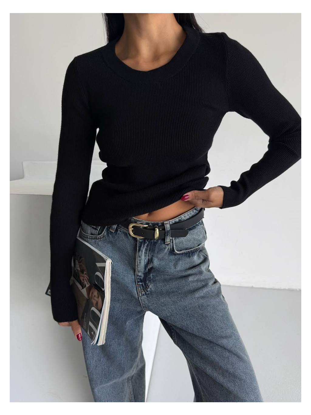 Přiléhavý žebrovaný svetr s dlouhým rukávem v minimalistickém a elegantním provedení.