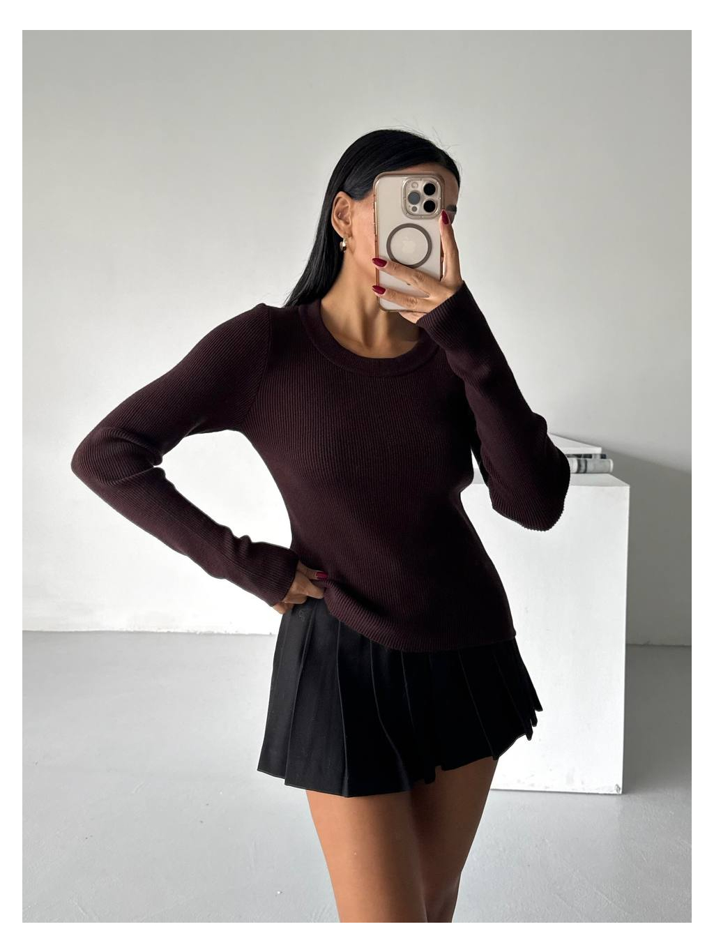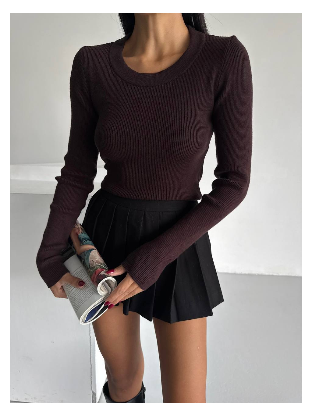 Přiléhavý žebrovaný svetr s dlouhým rukávem v minimalistickém a elegantním provedení.
