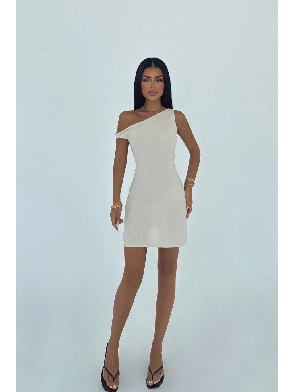 Krémové mini šaty na tenká ramínka – jednoduchý a elegantní kousek pro letní dny.