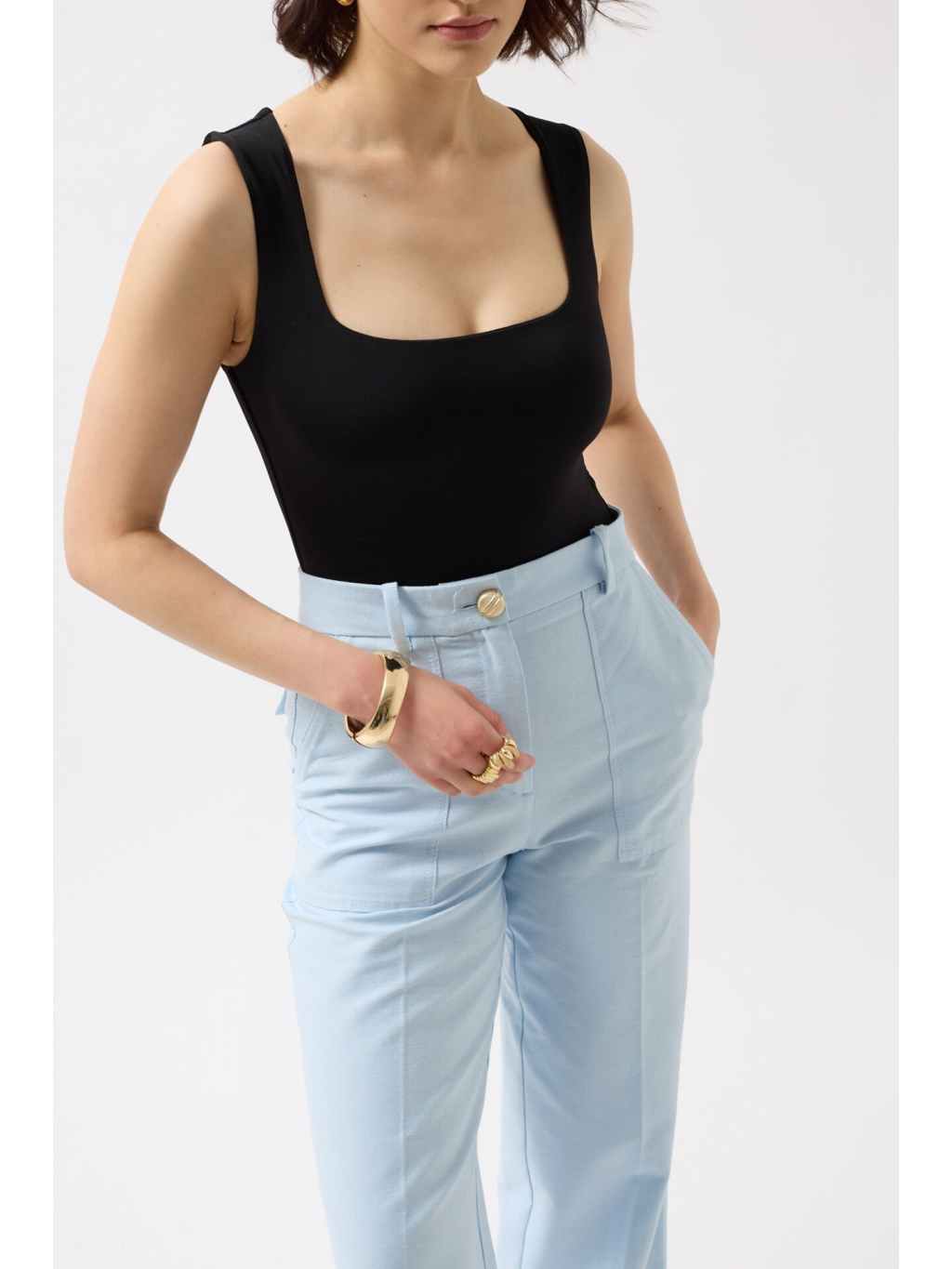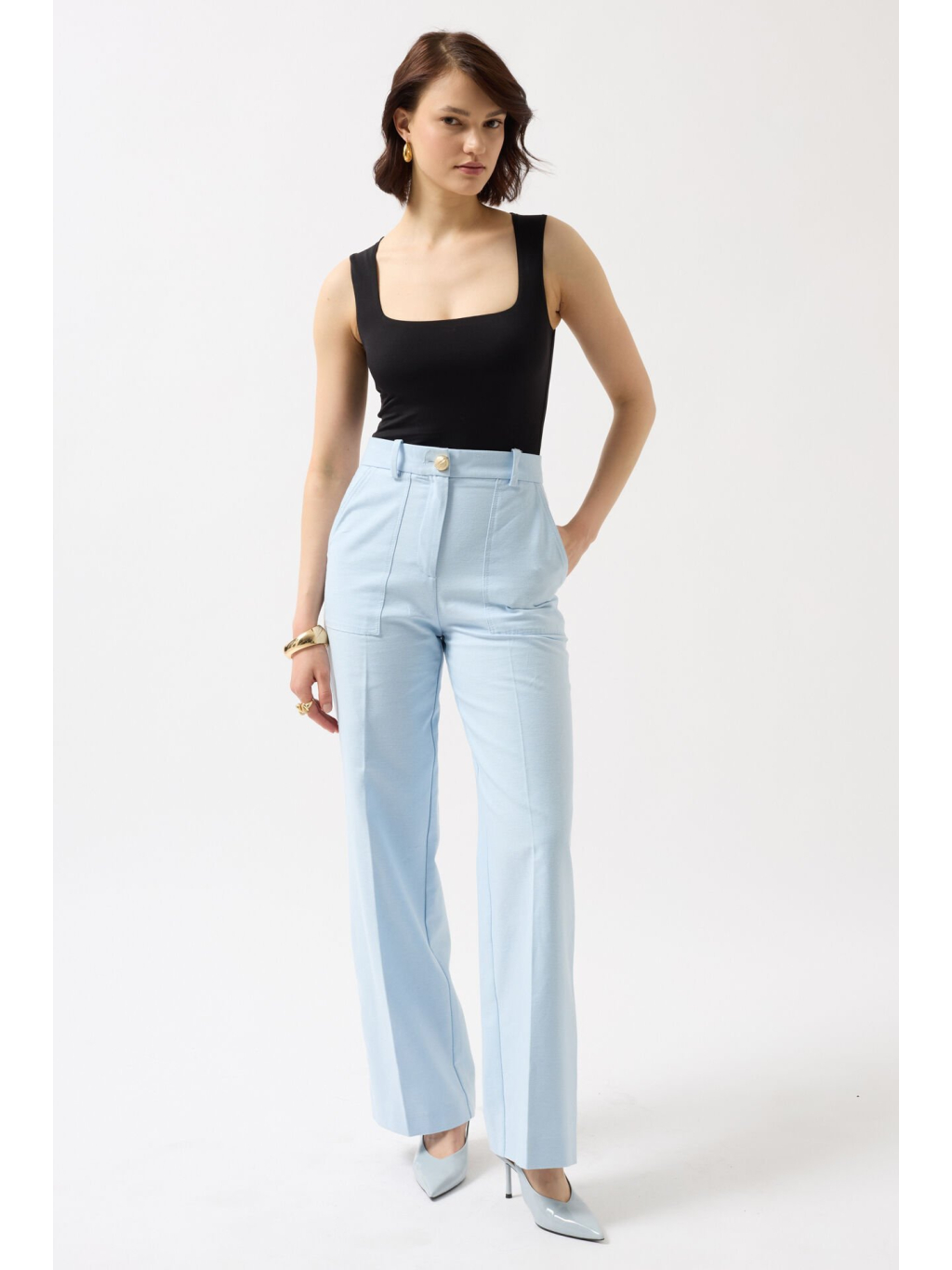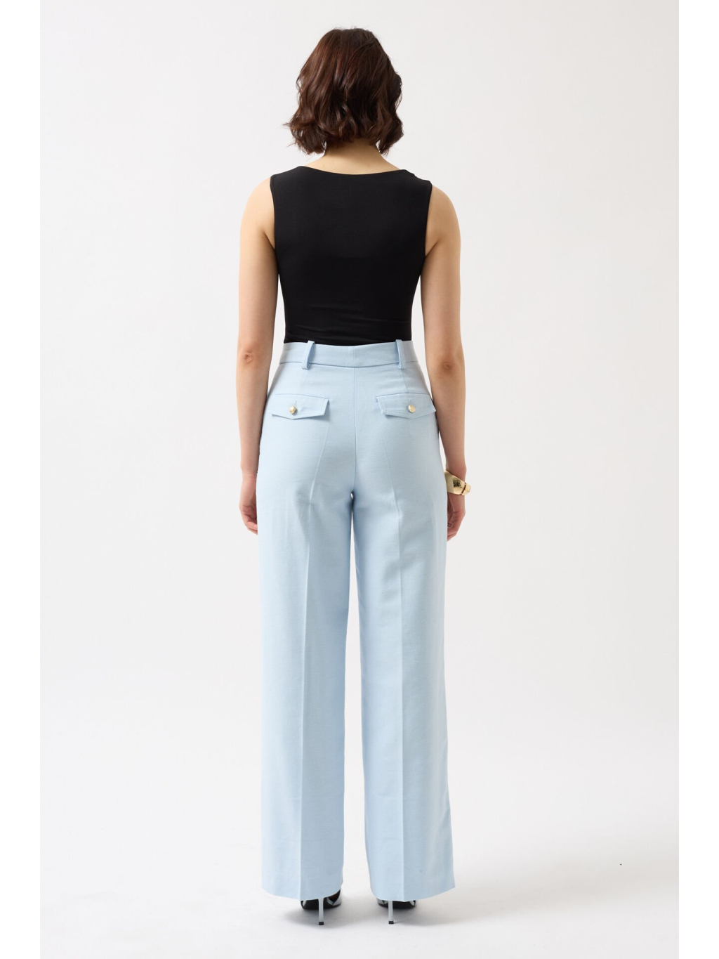 Tento model skvěle doplní široké kalhoty, sukni s vysokým pasem nebo sako – ideální na denní nošení i večerní styling.