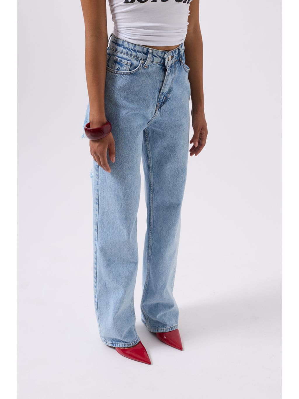 Tyto volnější džíny s rovným střihem a vyšším pasem jsou trefou do černého pro všechny milovnice nedbalé elegance a urban stylu. Světlé denimové provedení působí svěže a dobře se kombinuje s výraznými topy, cropped tričky nebo mikinami.