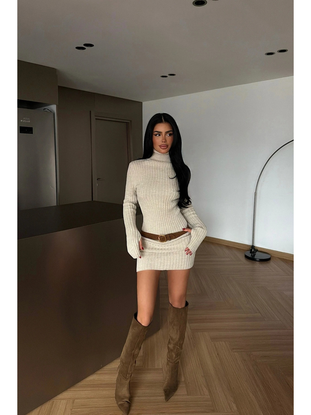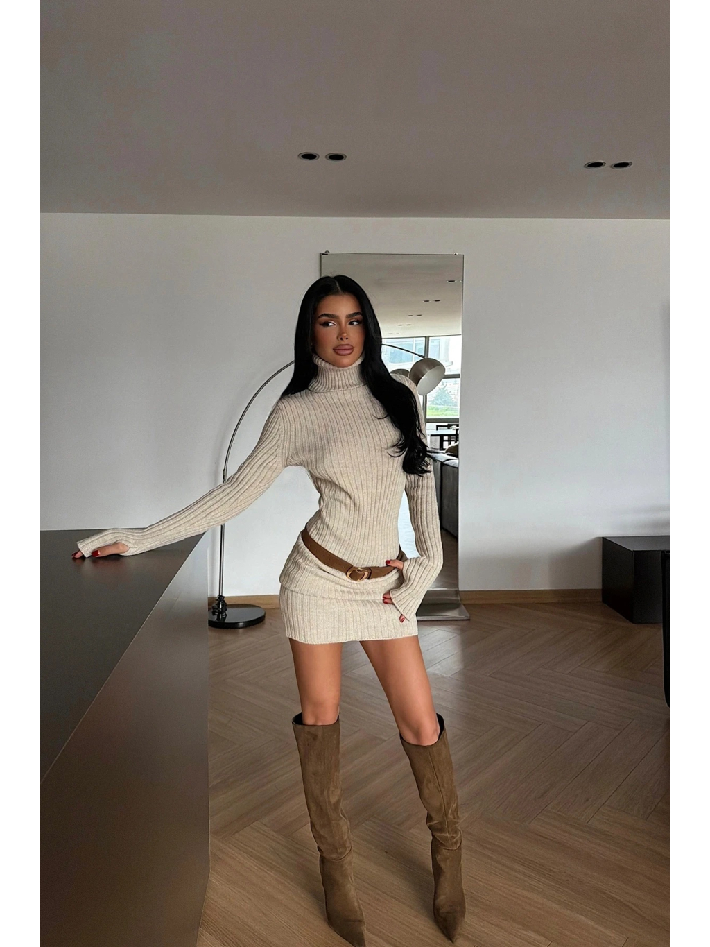 Kamenné žebrované pletené šaty se stojáčkem – ZURIA