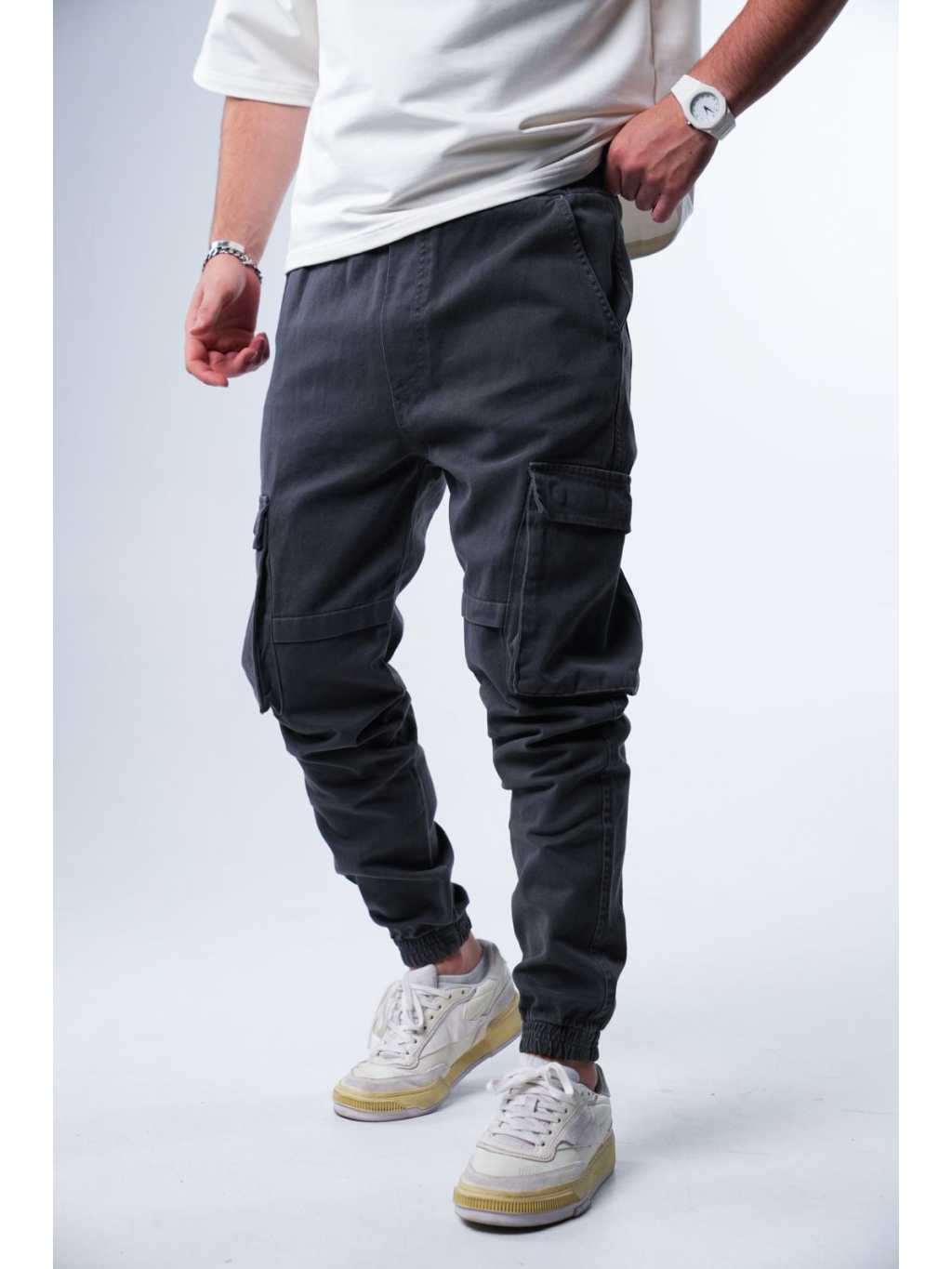 Cargo jogger kalhoty VELOCITY v antracitové barvě přinášejí kombinaci pohodlí a městského stylu. Jsou vyrobeny z 100% bavlny, což zaručuje příjemný pocit při nošení, prodyšnost a dobrou výdrž materiálu. Střih je mírně zúžený směrem ke kotníkům, kde jej doplňuje elastická manžeta pro pohodlné usazení.