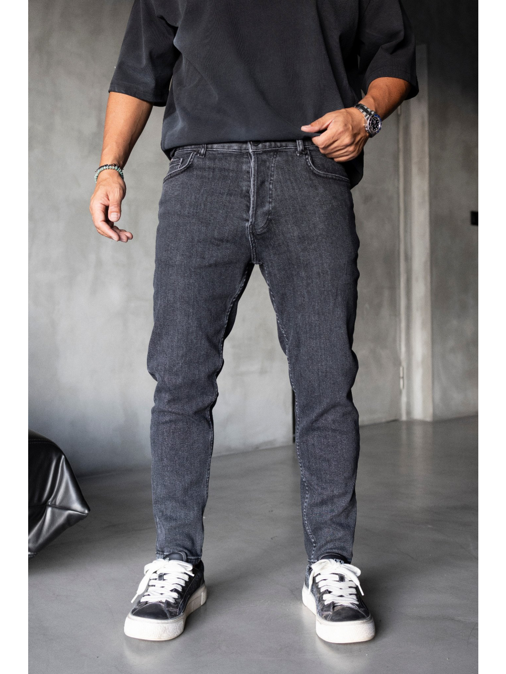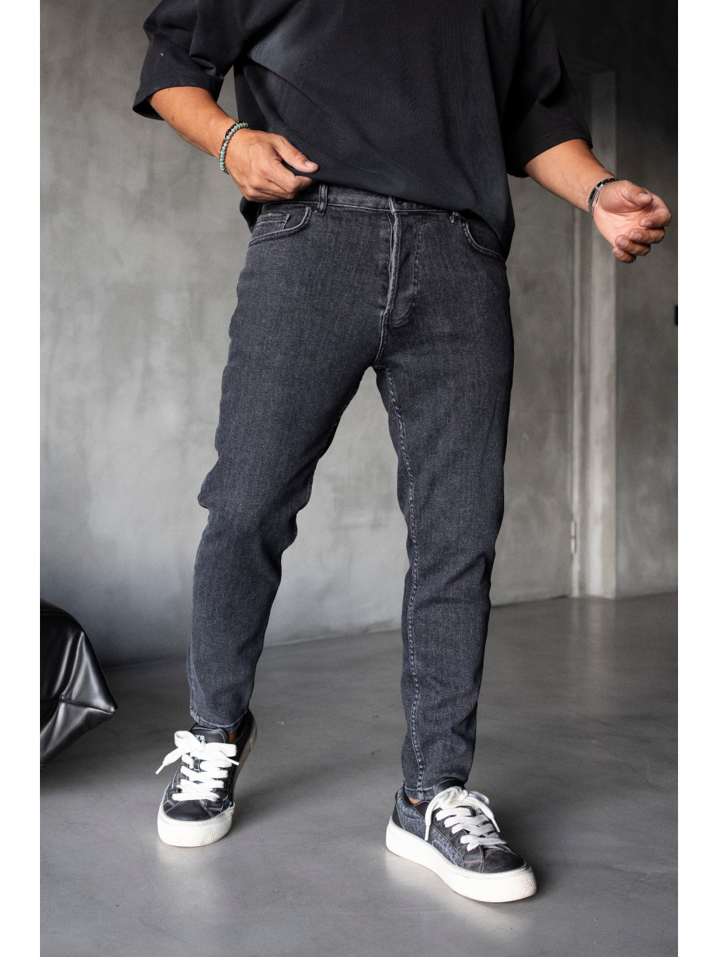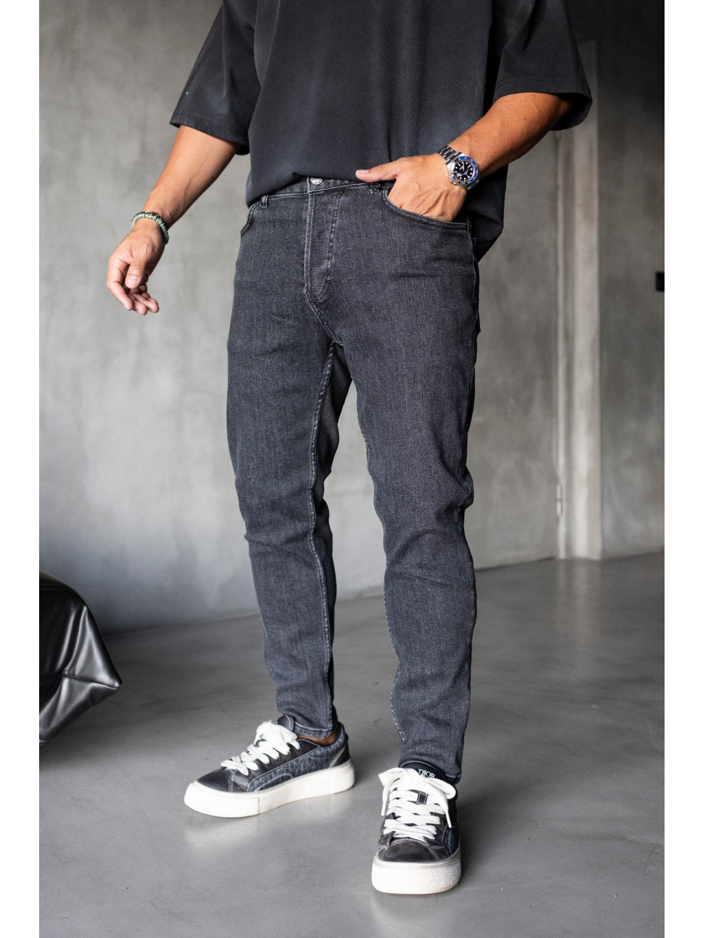 Pánské černé rifle ve volném loose fit střihu – minimalistický základ s výrazným urban stylem.