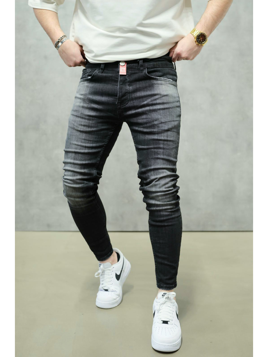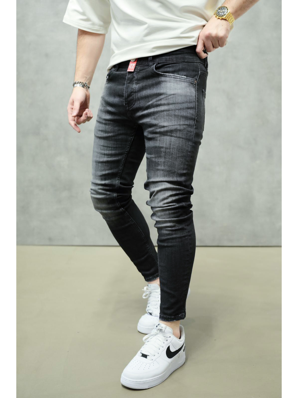 Barevné zpracování v černém tónu s jemným vyšisováním dodává riflím hloubku a lehce rebelský nádech, aniž by působily přehnaně. Minimalistický design bez trhání zajišťuje širokou kombinovatelnost – skvěle fungují s oversized tričkem, basic mikinou i košilí.
