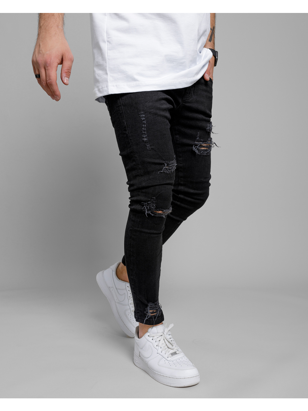 Černé roztrhané džíny BASKET