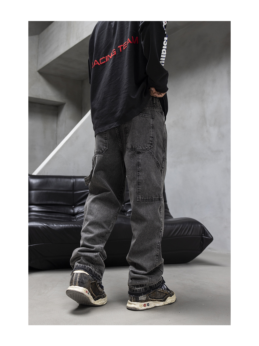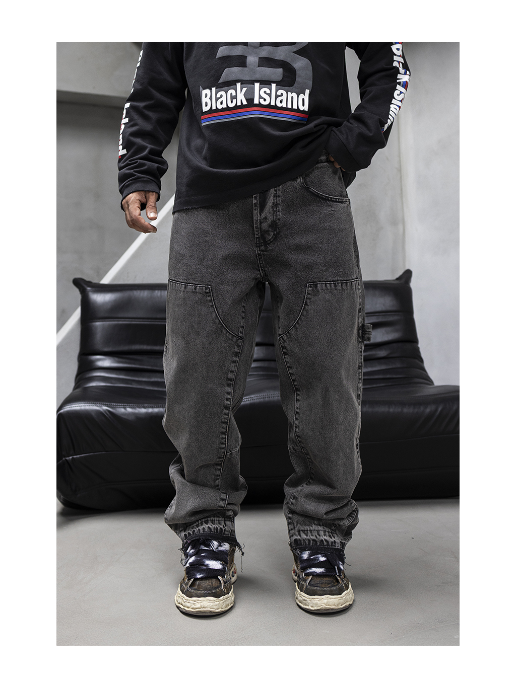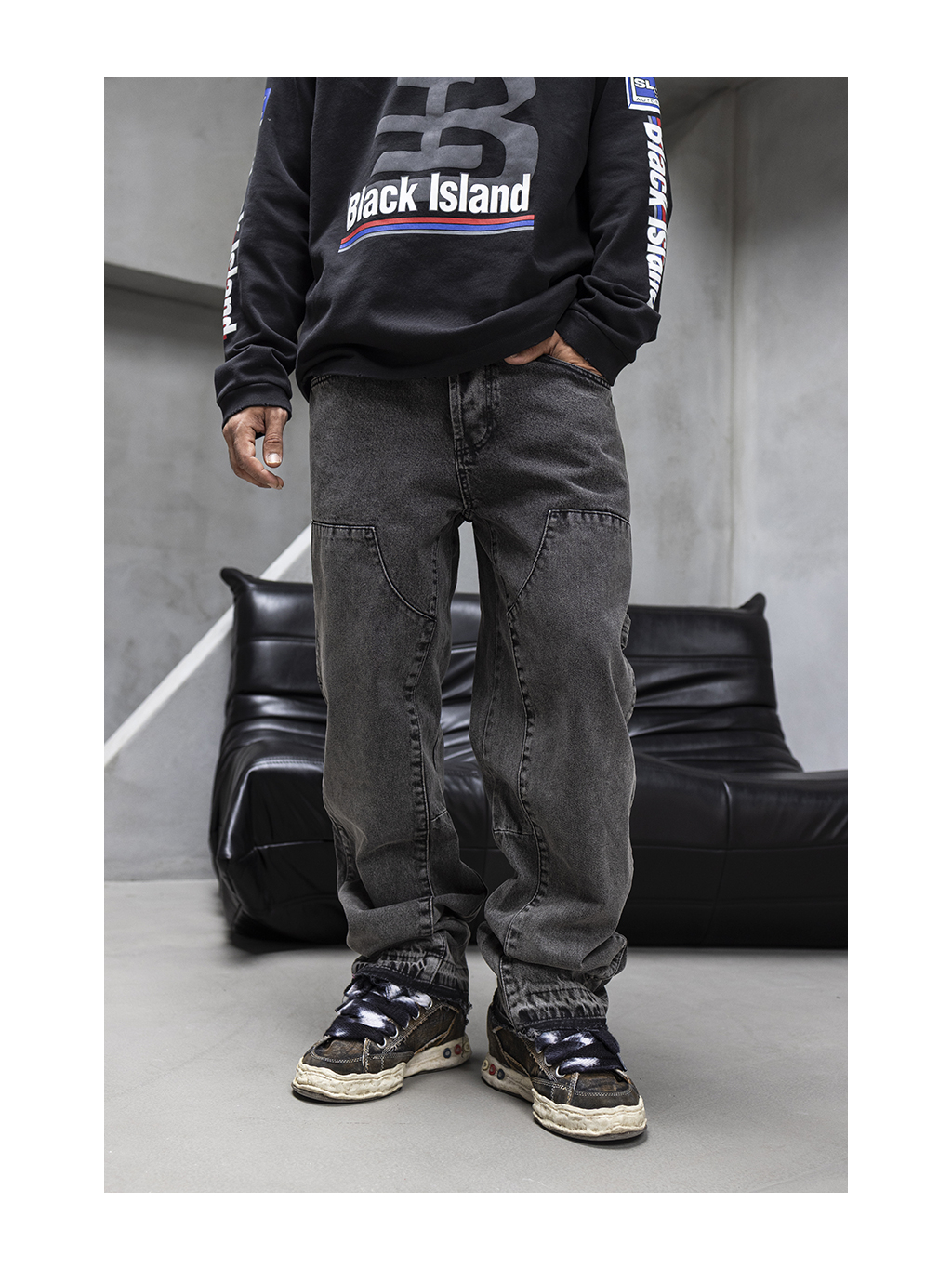 Šedé loose fit džíny s výrazným sepraným efektem a robustním prošitím – ideální pro ležérní street styl.