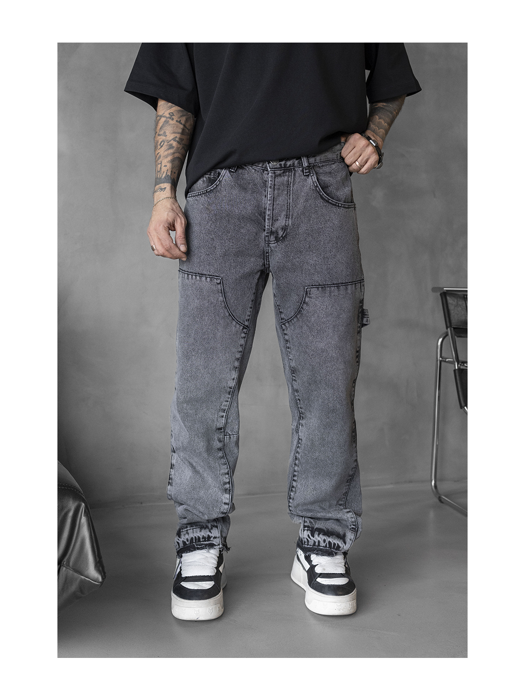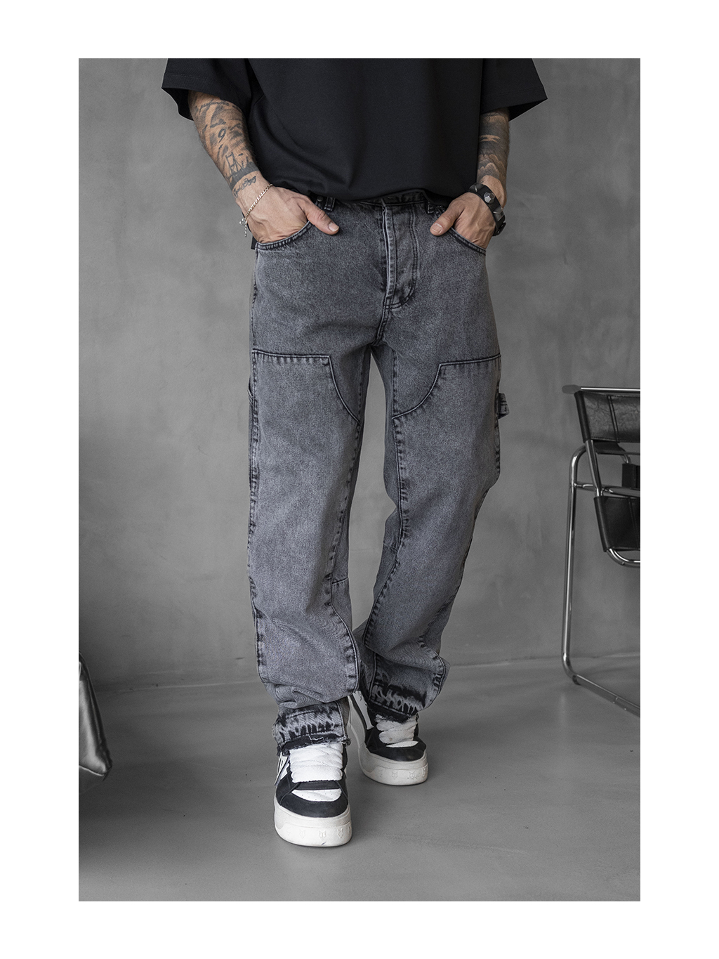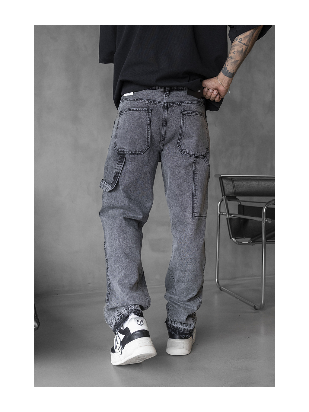 Pánské loose fit džíny v šedém vintage odstínu – volný střih, originální švy a autentický streetový vzhled.