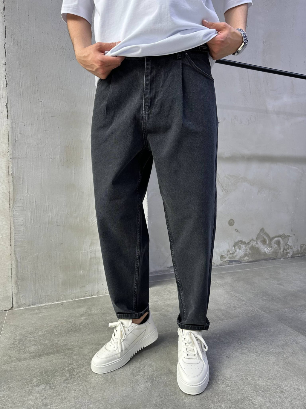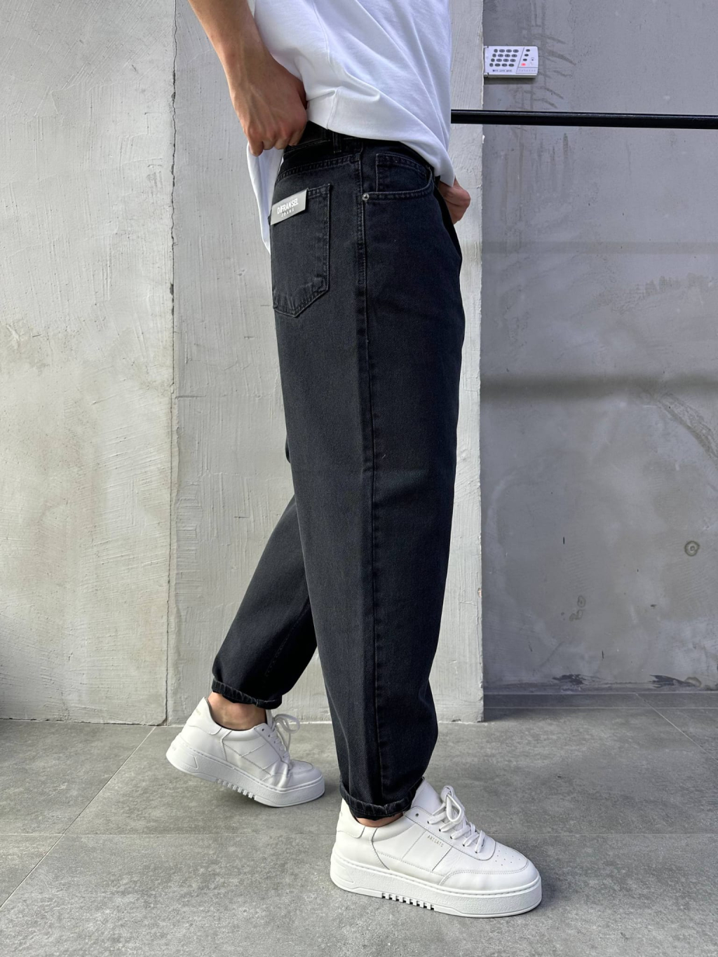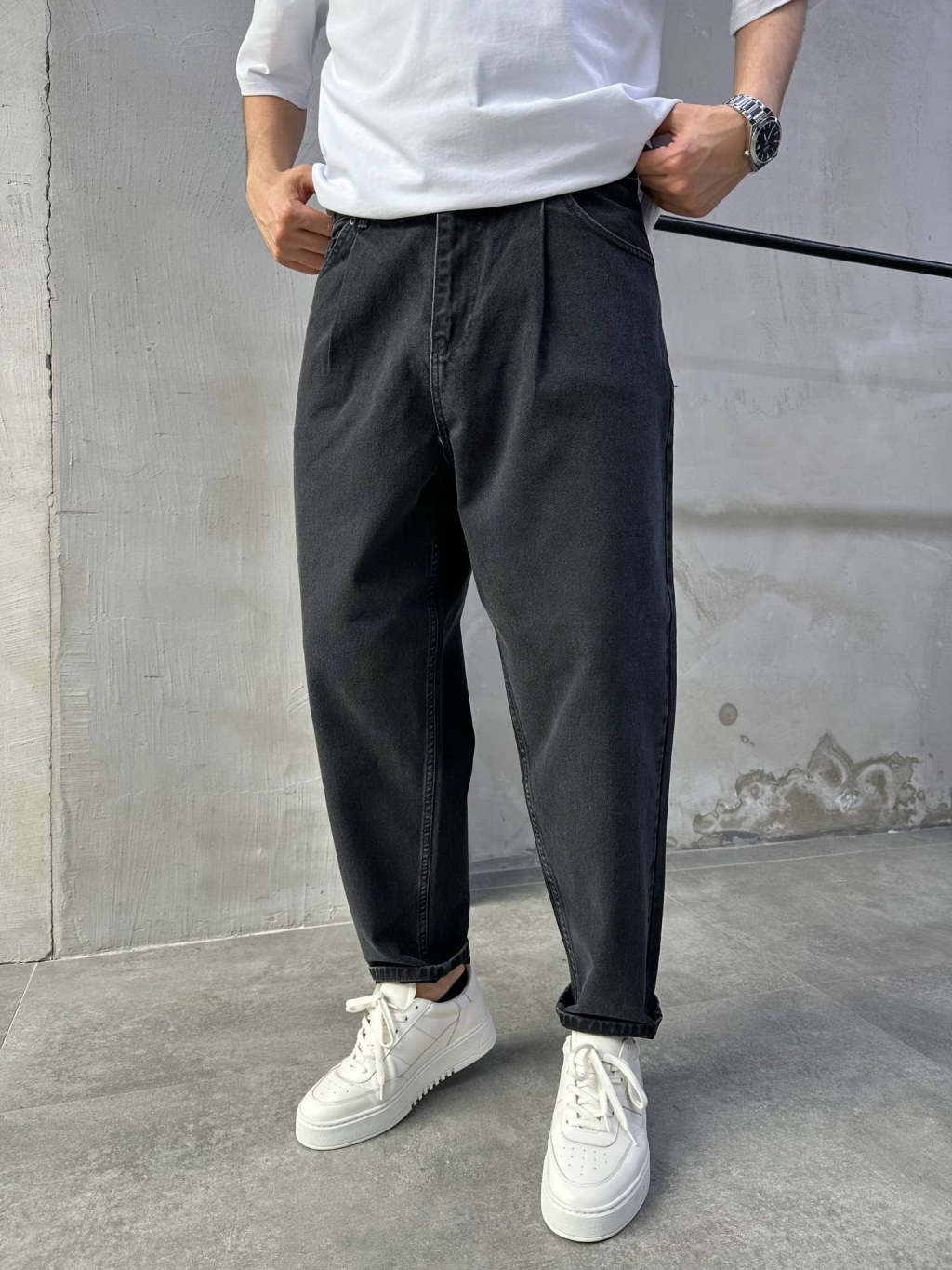 Pánské černé rifle s relaxed balonovým střihem – moderní silueta s důrazem na pohodlí a čistý streetwearový styl.