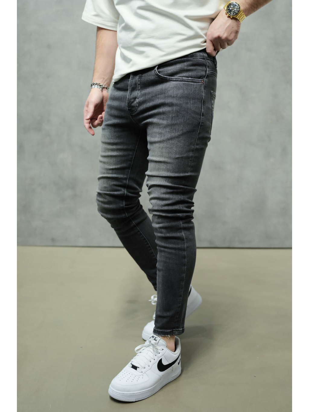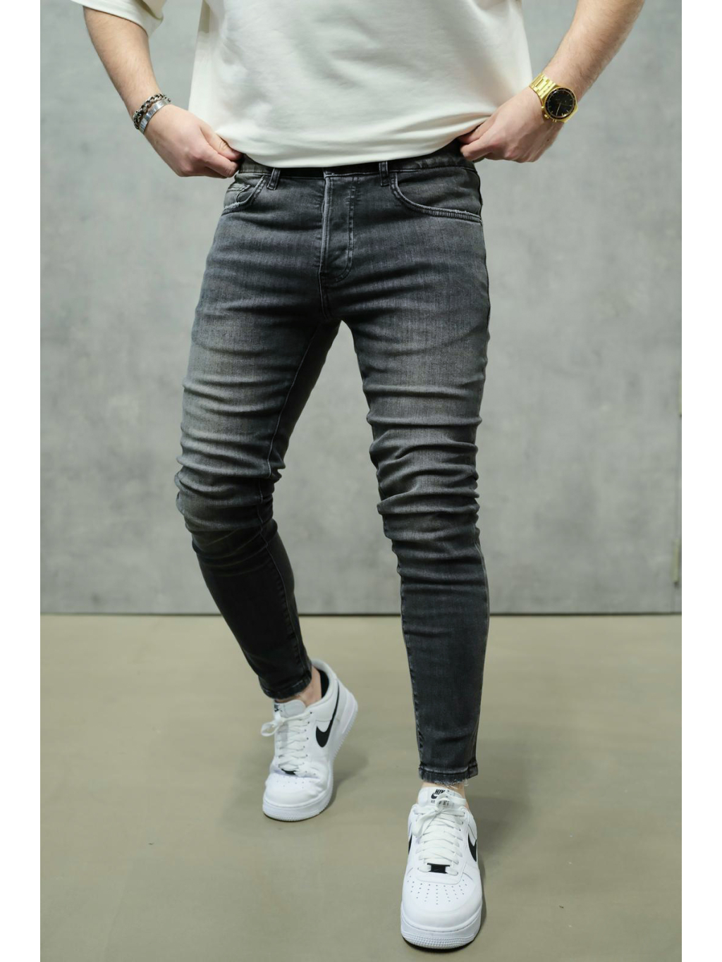 Tmavě šedé skinny fit rifle s jemným sepraným efektem – čistý a moderní základ pro každodenní outfit.