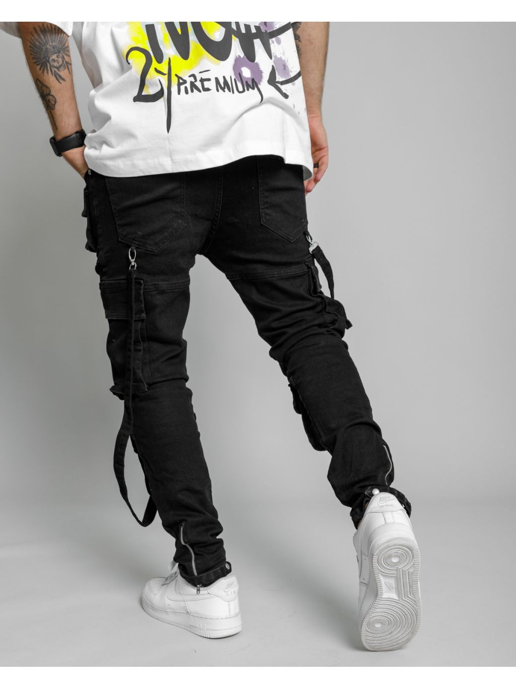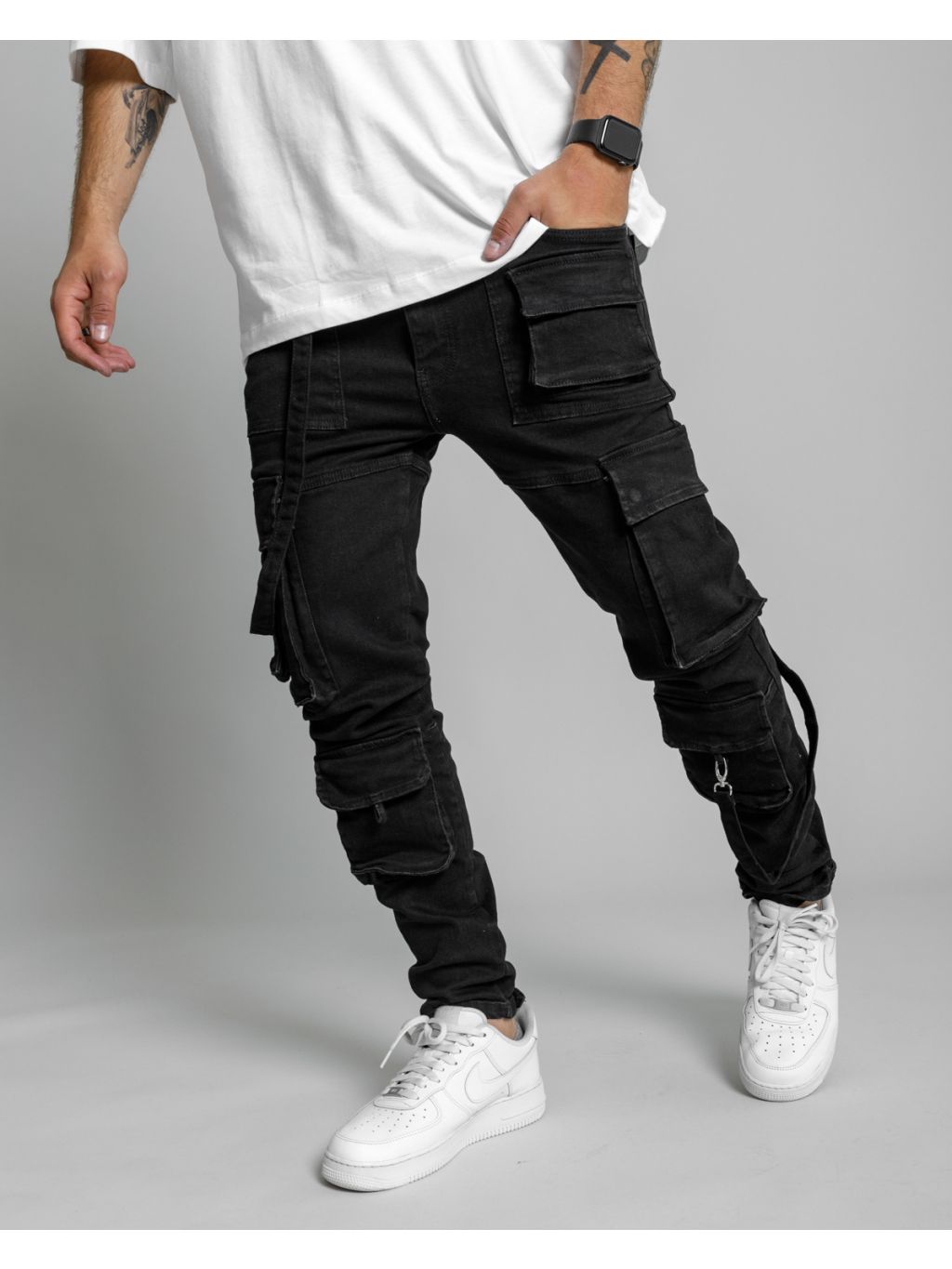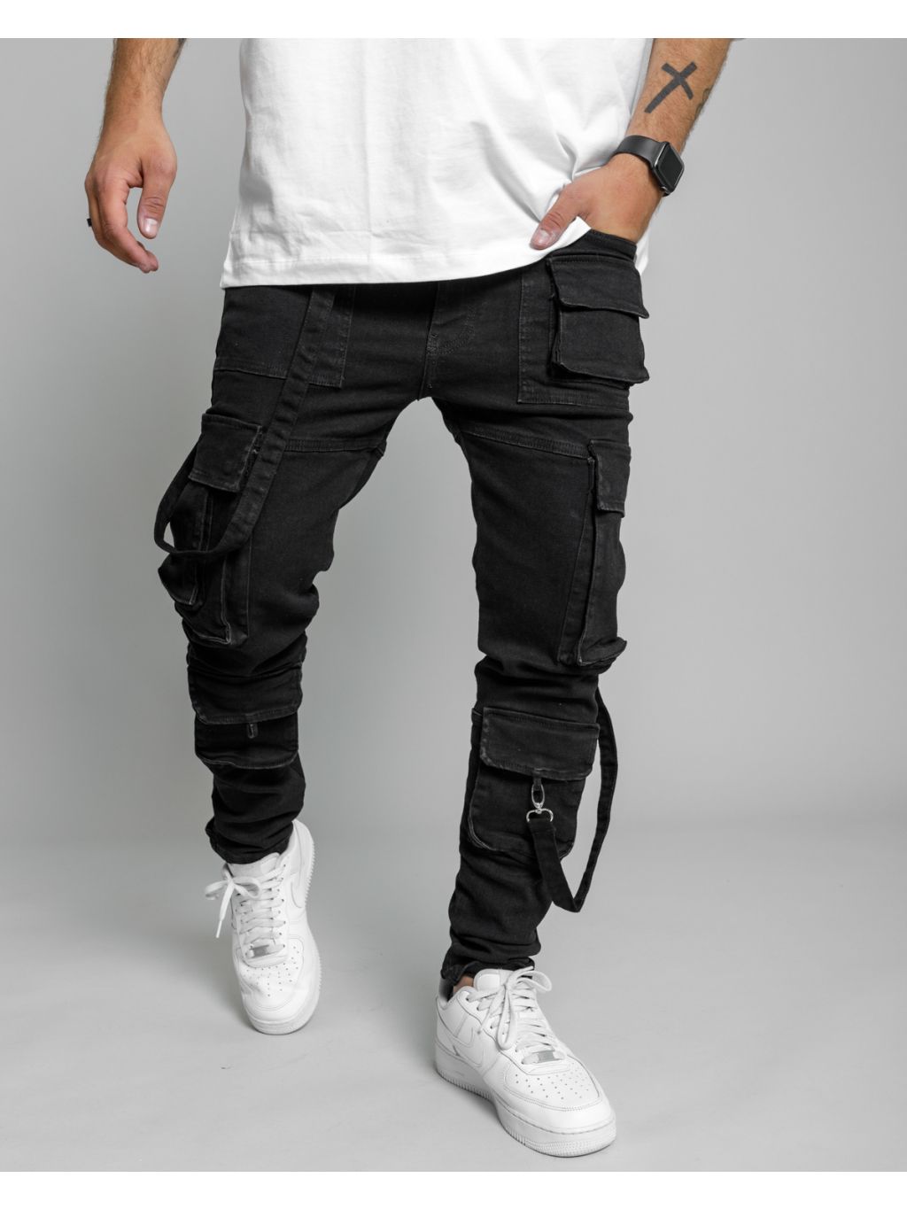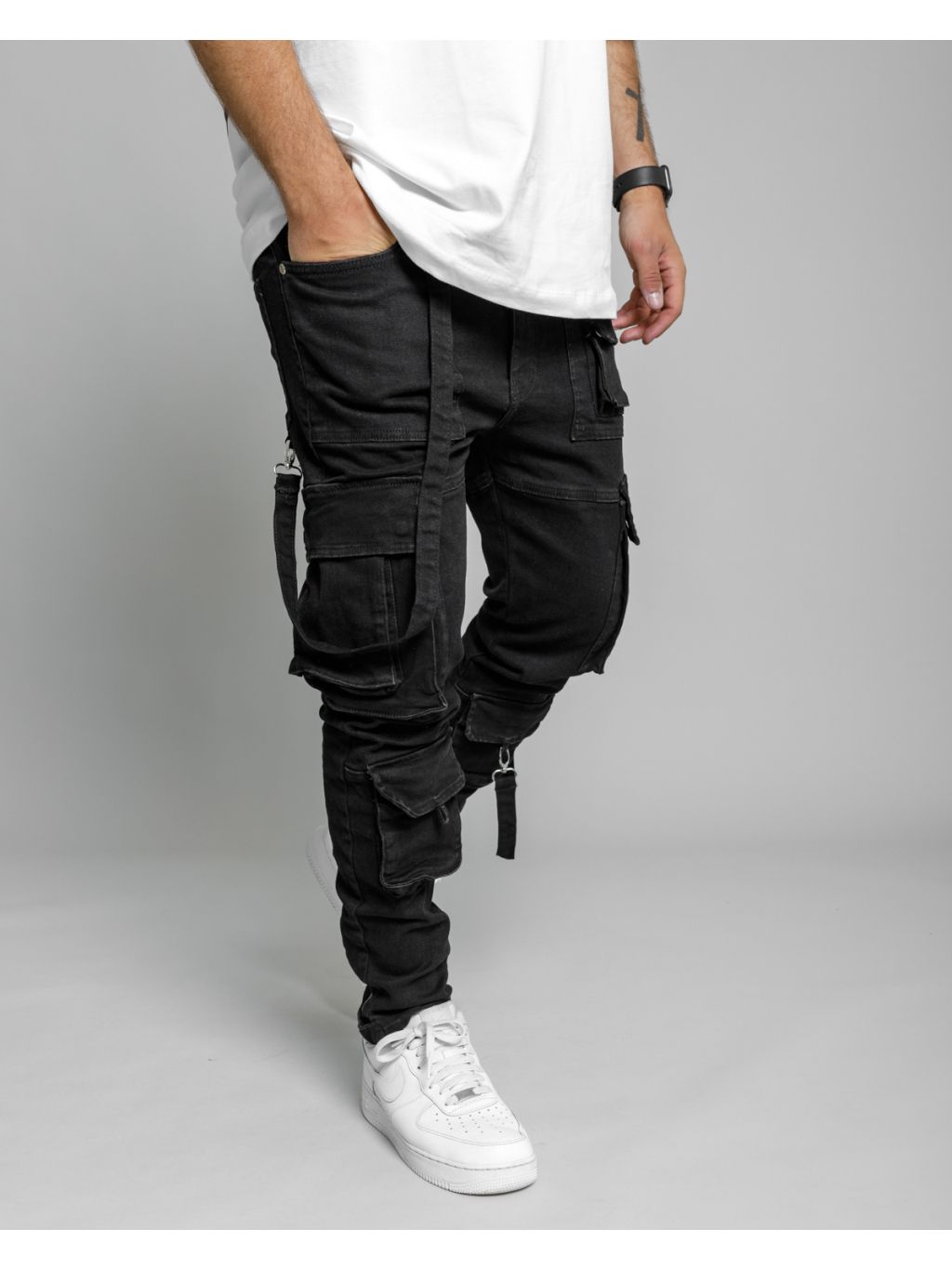 Černé cargo fit kalhoty ICONO