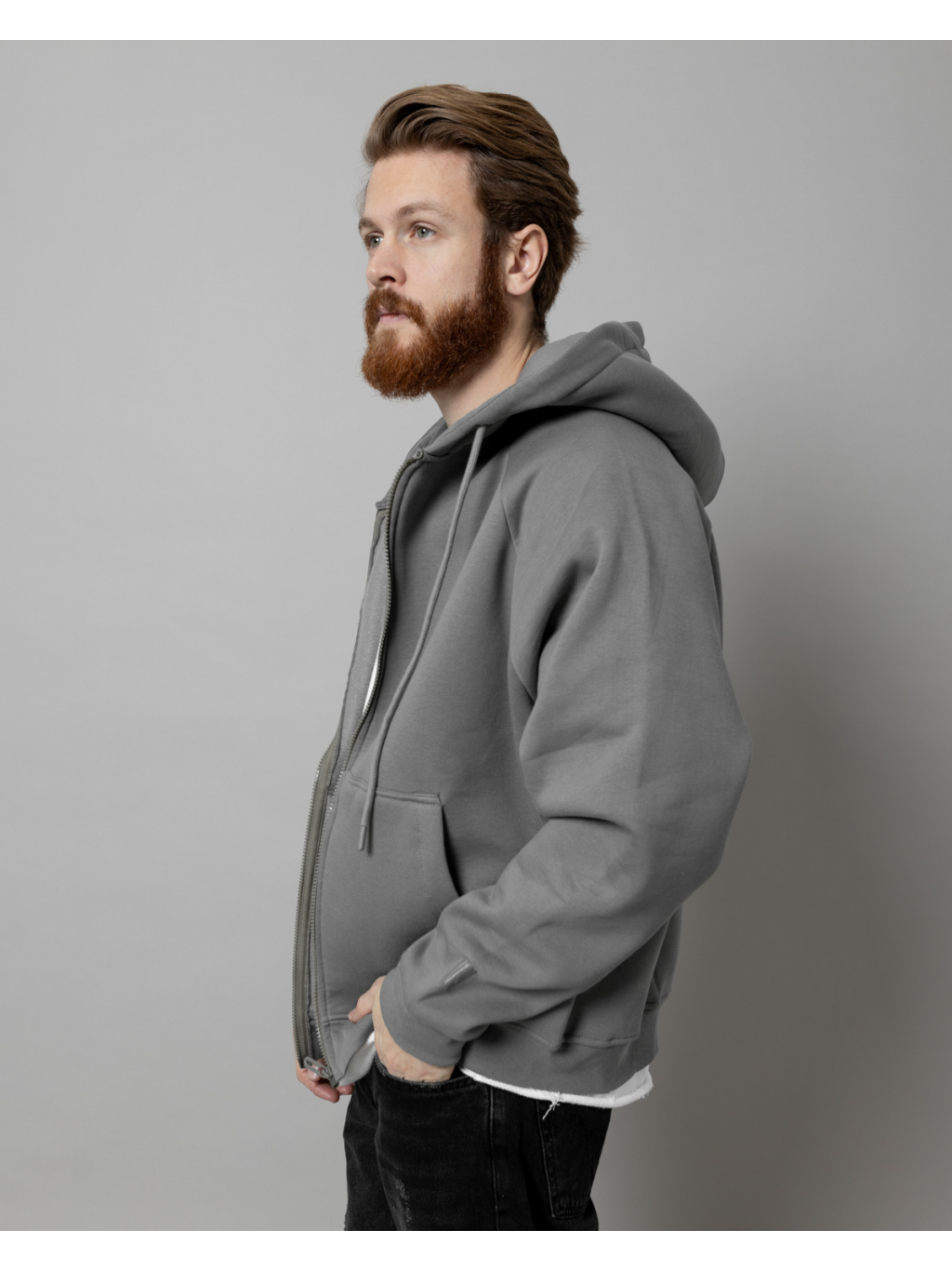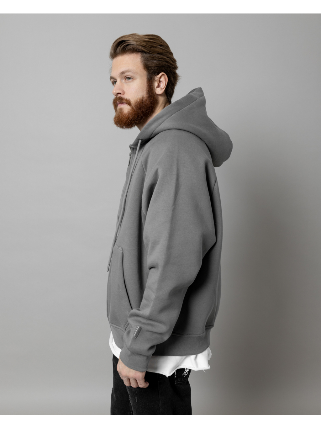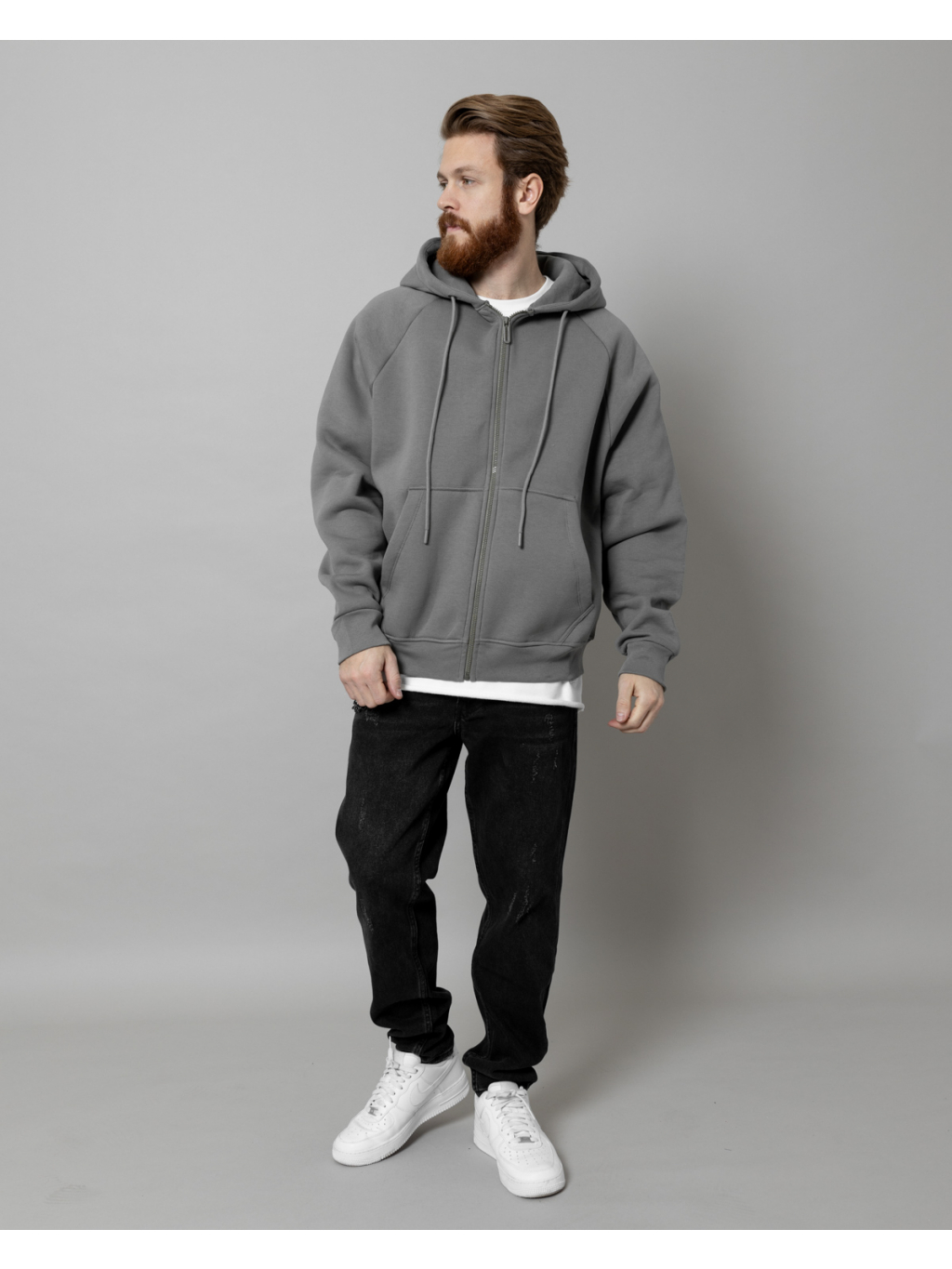 Šedá oversized mikina na zip.