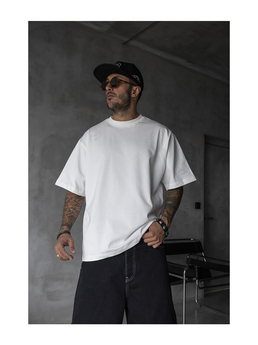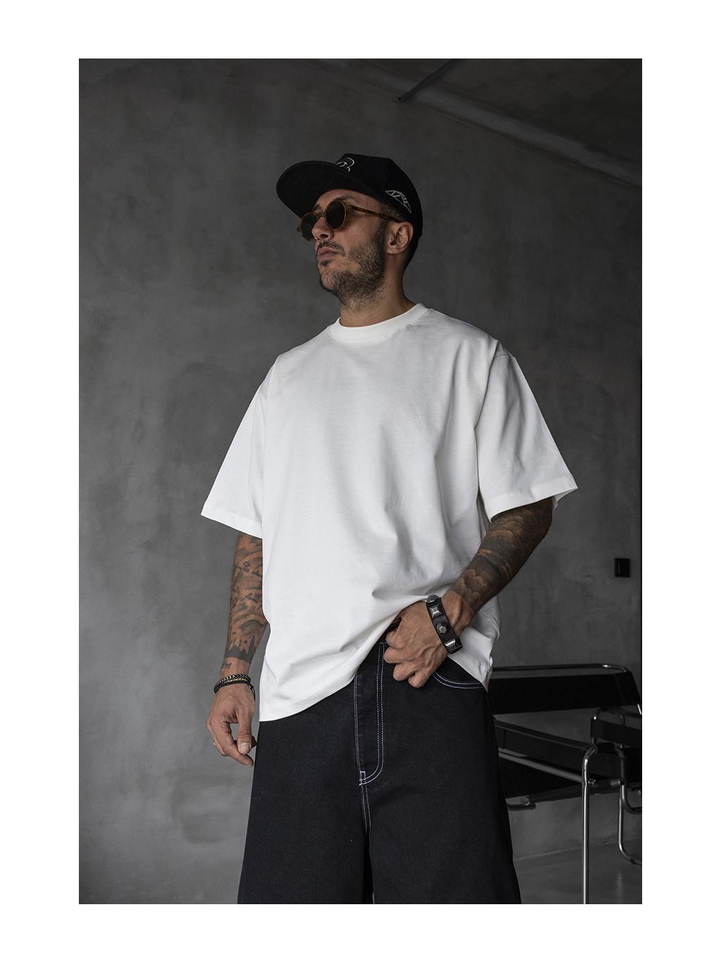 Bílé tričko v oversized střihu nabízí maximální univerzálnost a moderní siluetu. Volný tvar, širší rukávy a lehce prodloužená délka z něj dělají ideální základ každého streetwearového outfitu.
