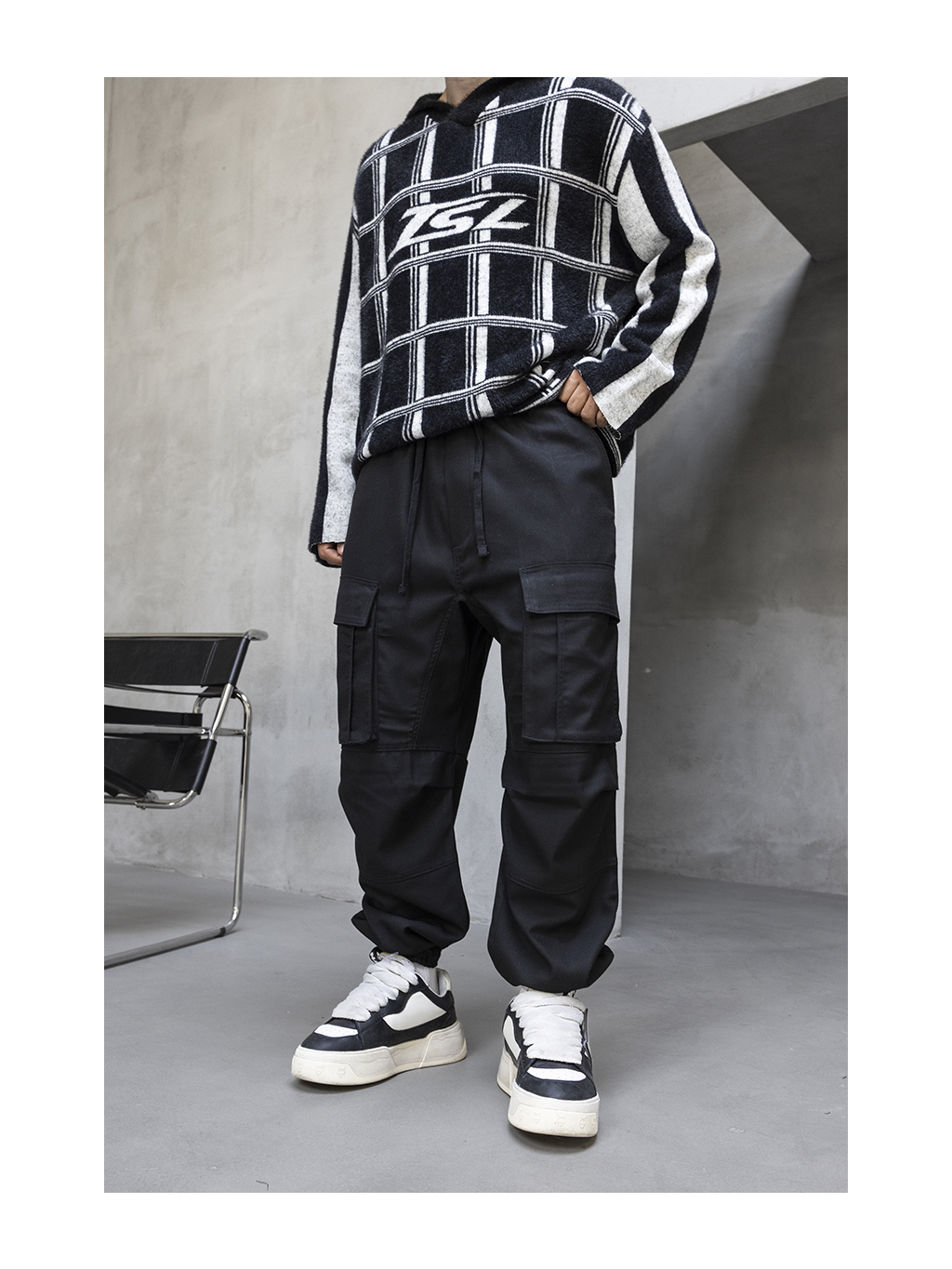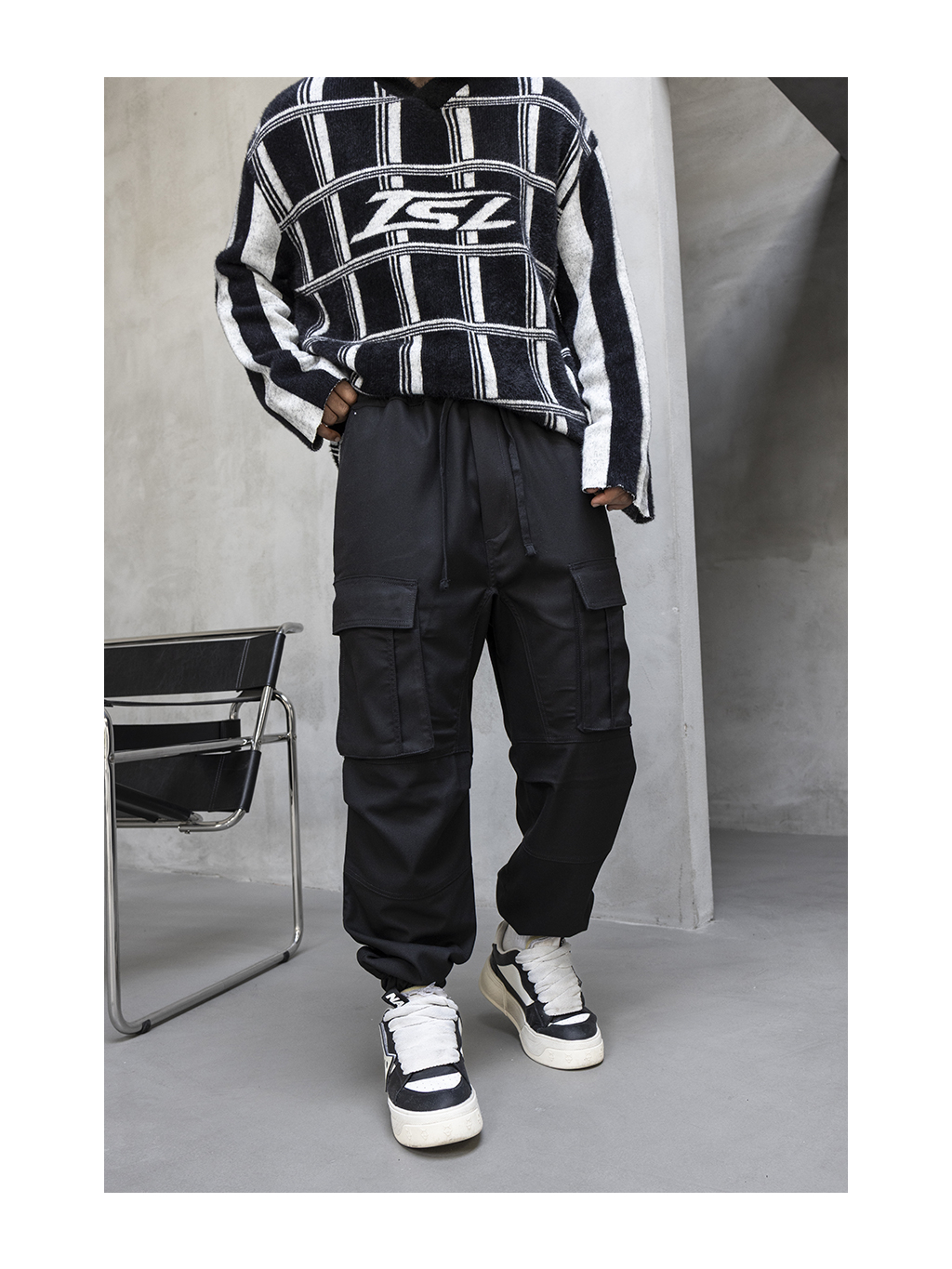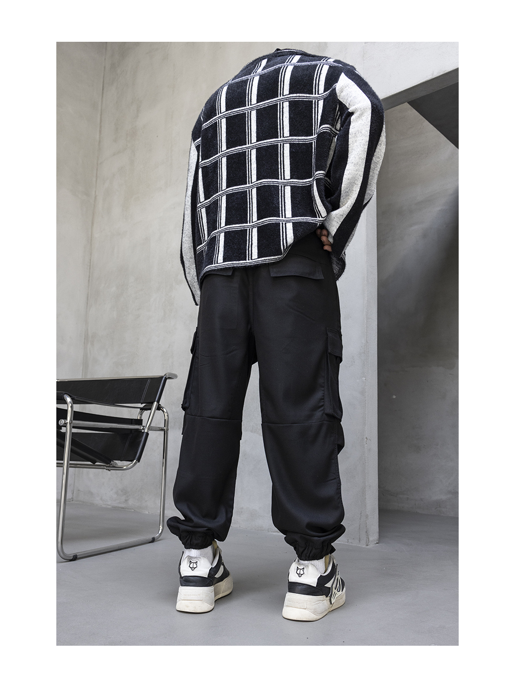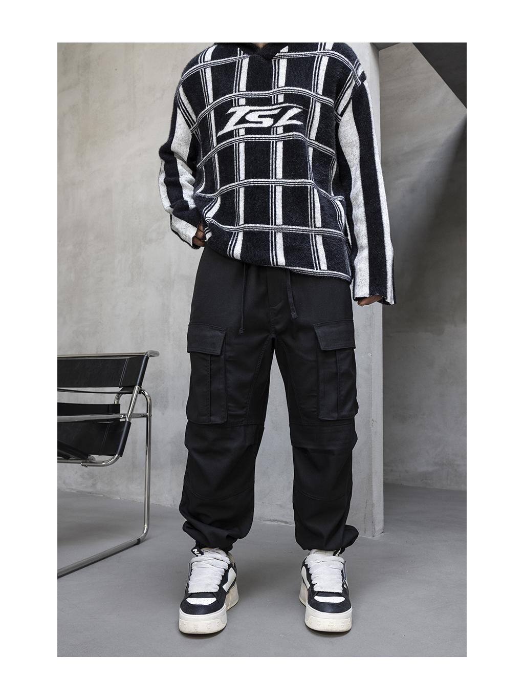 Design doplňují praktické kapsy na nohavicích, které odkazují na cargo styl, a stahování v pase zajišťující pohodlné nošení a snadné přizpůsobení postavě. Spodní část nohavic je lehce stažená, což pomáhá držet tvar a dobře funguje s masivnější obuví.