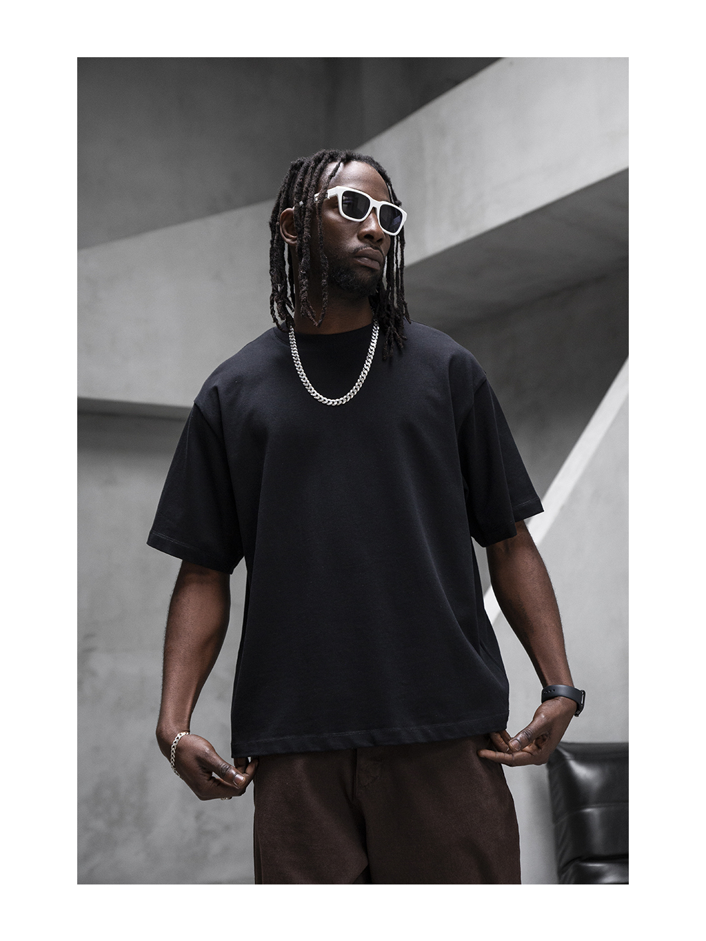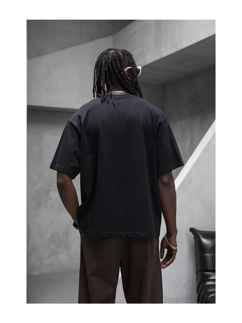 Toto černé tričko v oversized střihu je postavené na jednoduchosti a proporcích. Volnější silueta se spadlými rameny vytváří uvolněný streetový vzhled, který funguje samostatně i ve vrstvených outfitech. Minimalistické provedení bez zbytečných detailů dává vyniknout střihu a materiálu.