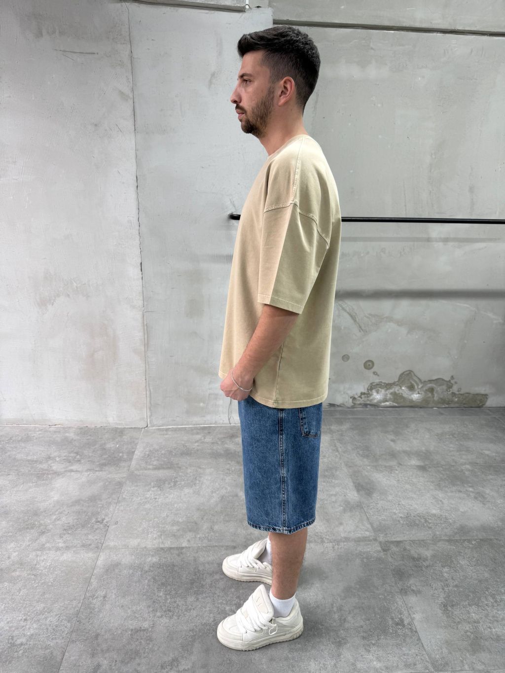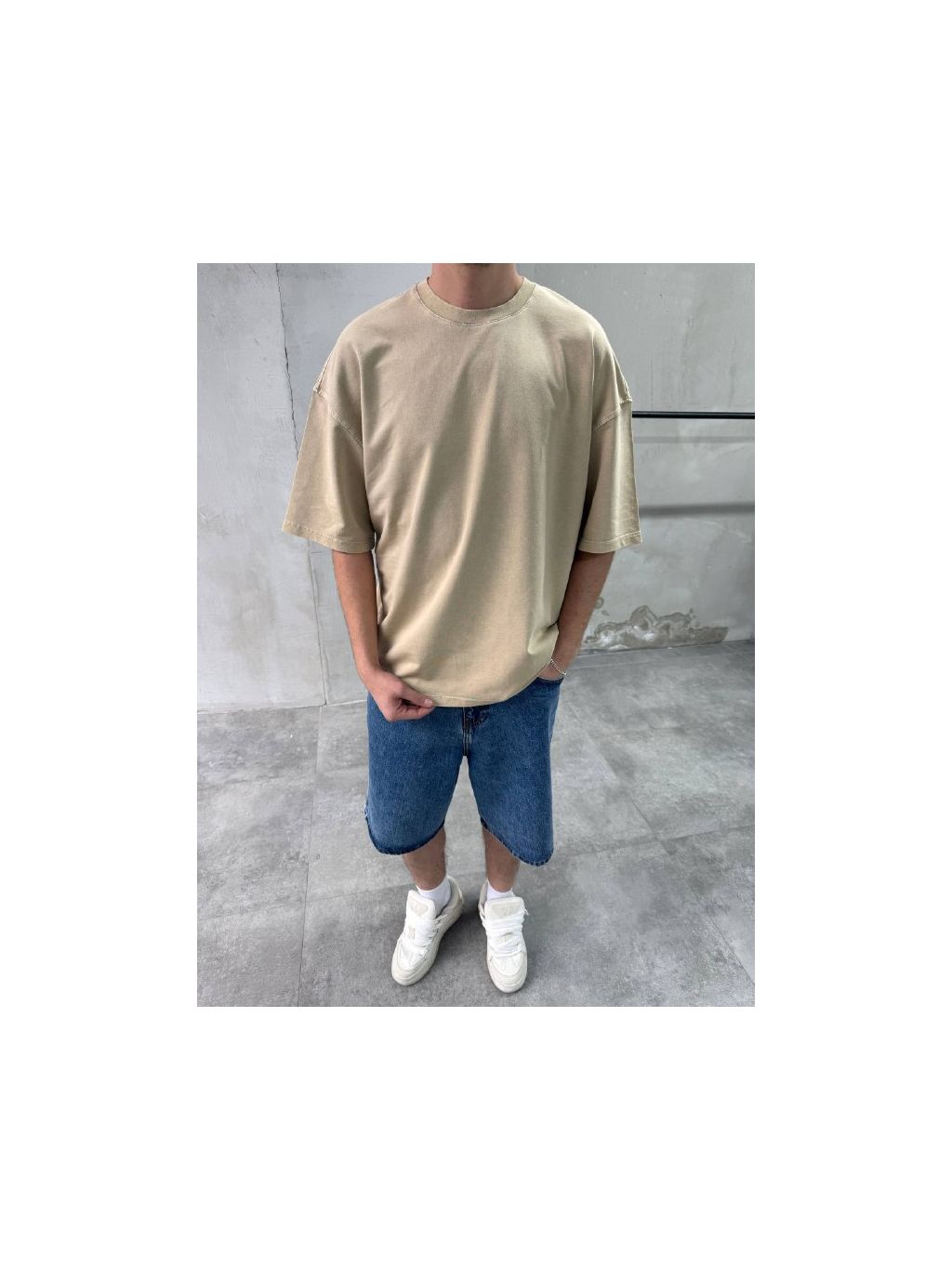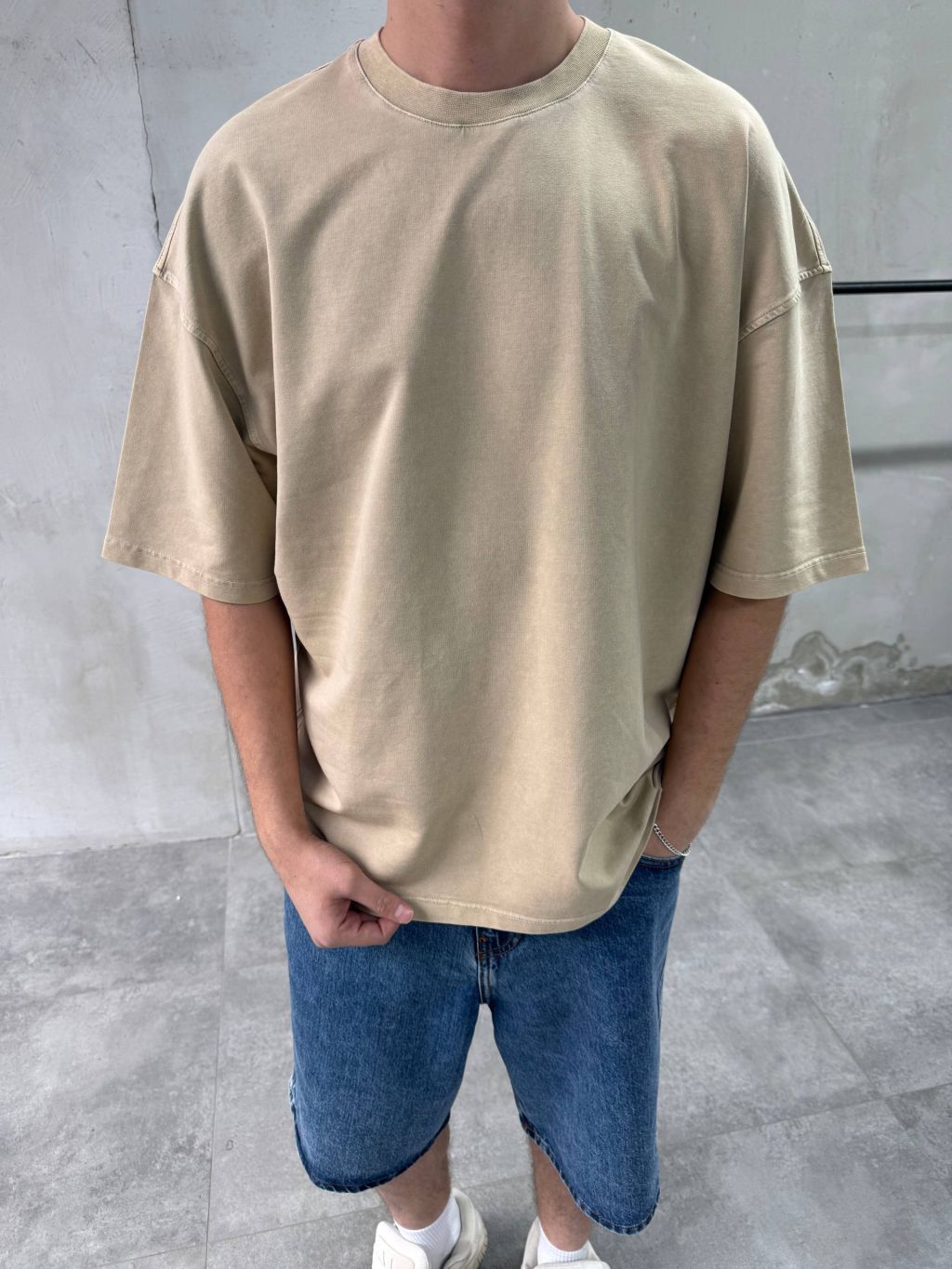 Pánské oversized tričko v béžové barvě – čistý minimalistický kousek pro každodenní outfit.