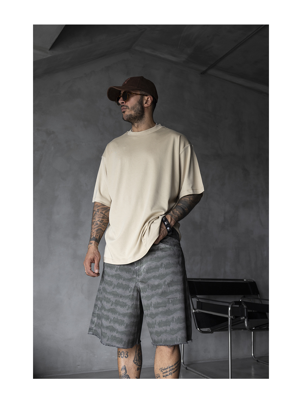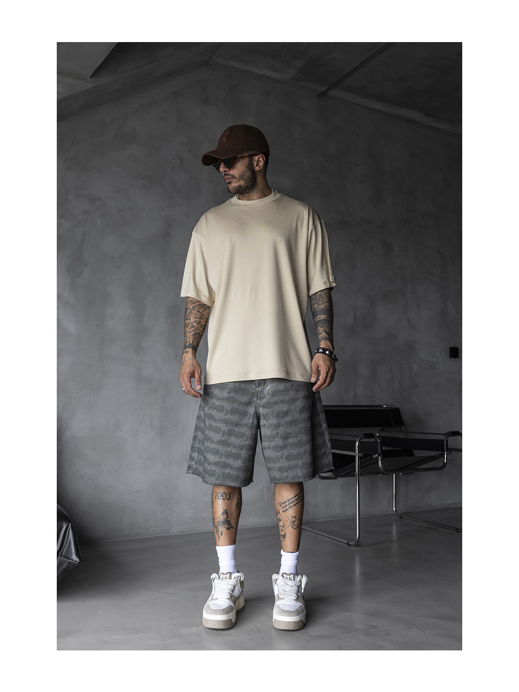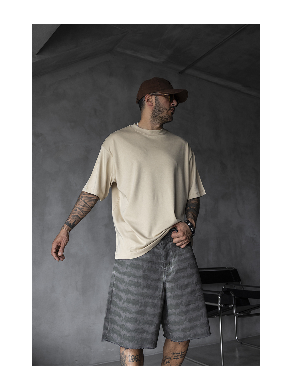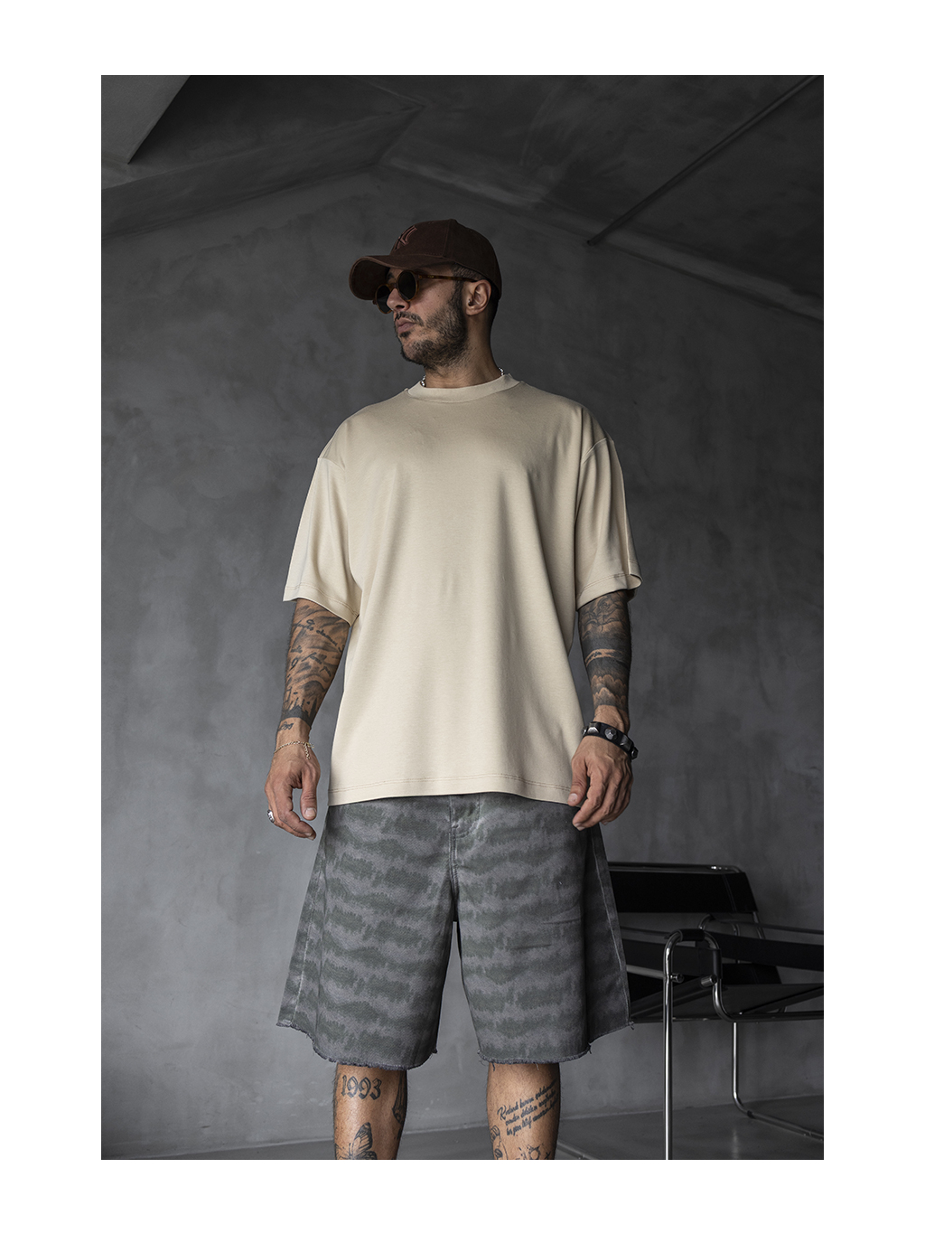 Pánské oversized tričko v teple béžovém tónu – decentní barva pro univerzální styling.