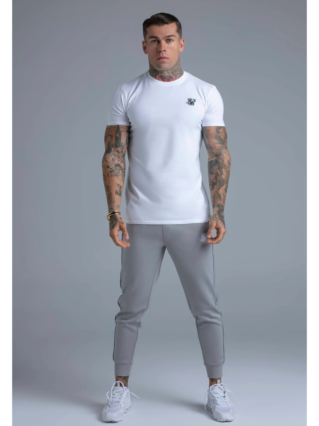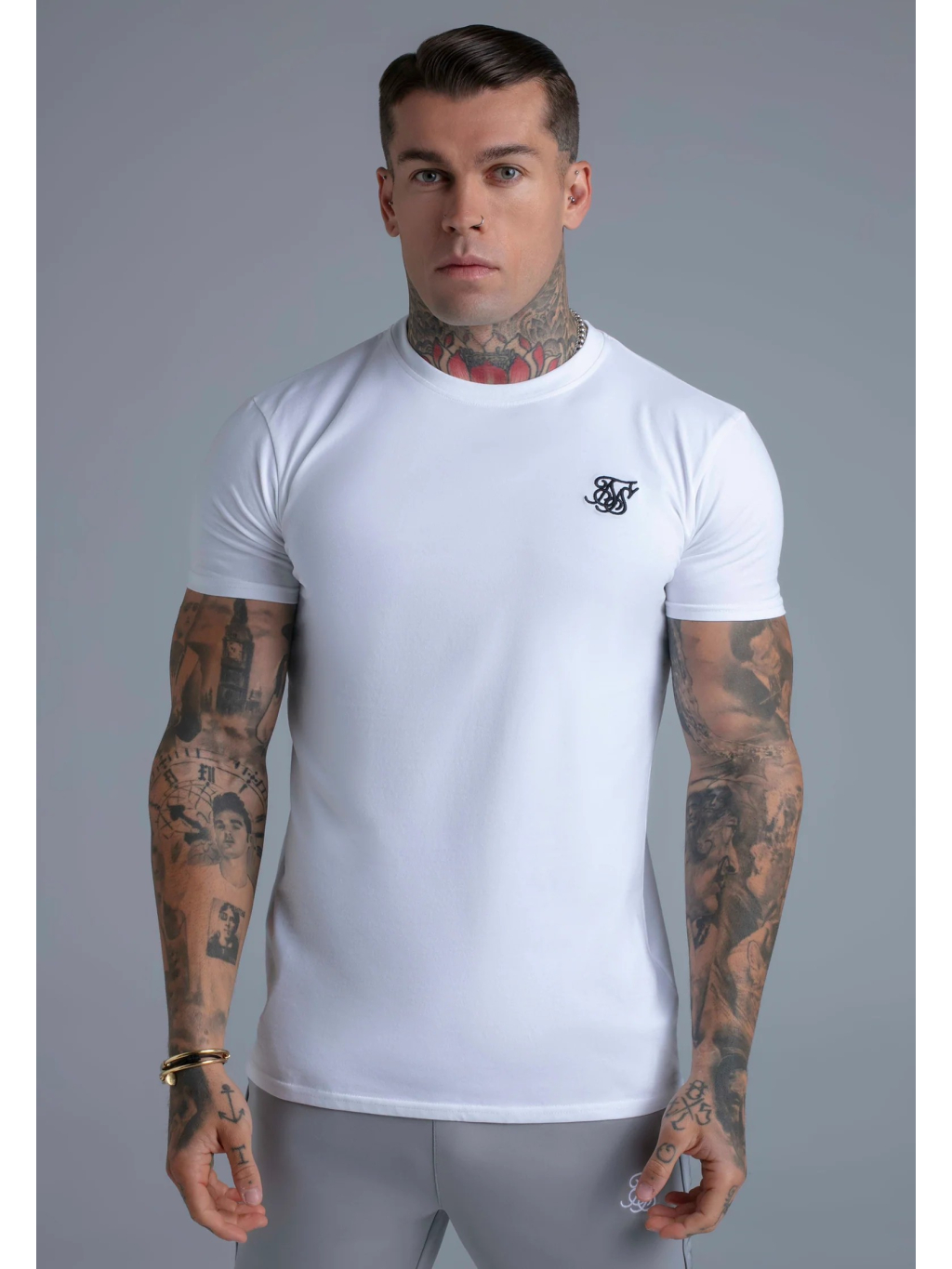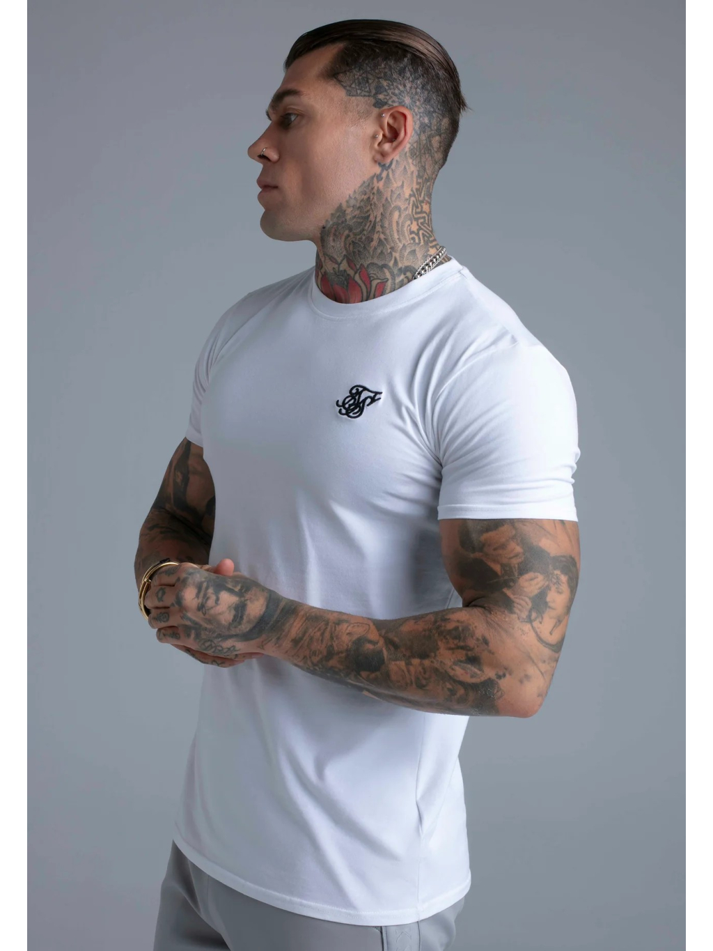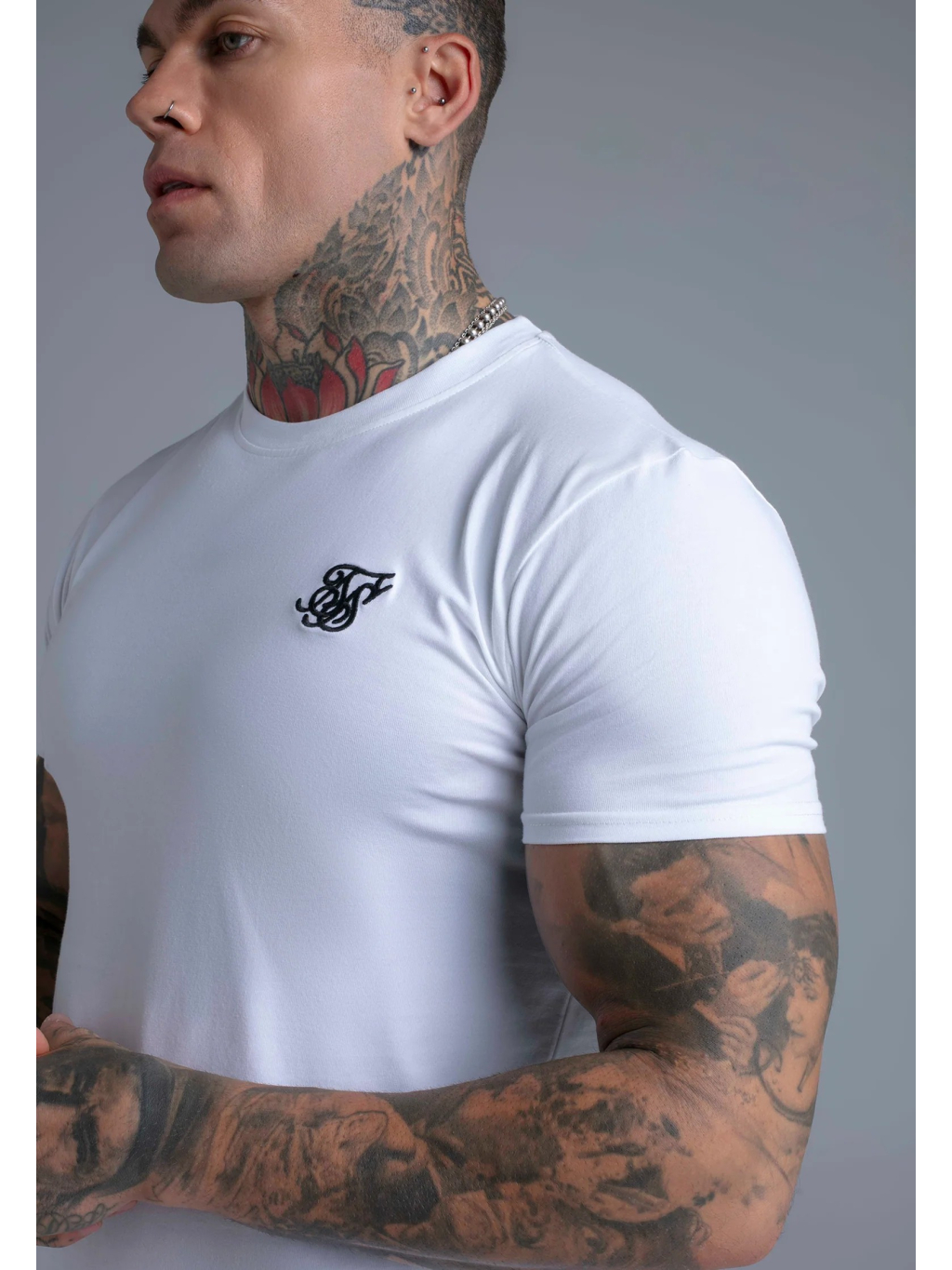 Bílé pánské tričko SikSilk v muscle fit střihu – čistý, minimalistický základ, který perfektně zvýrazní postavu.
